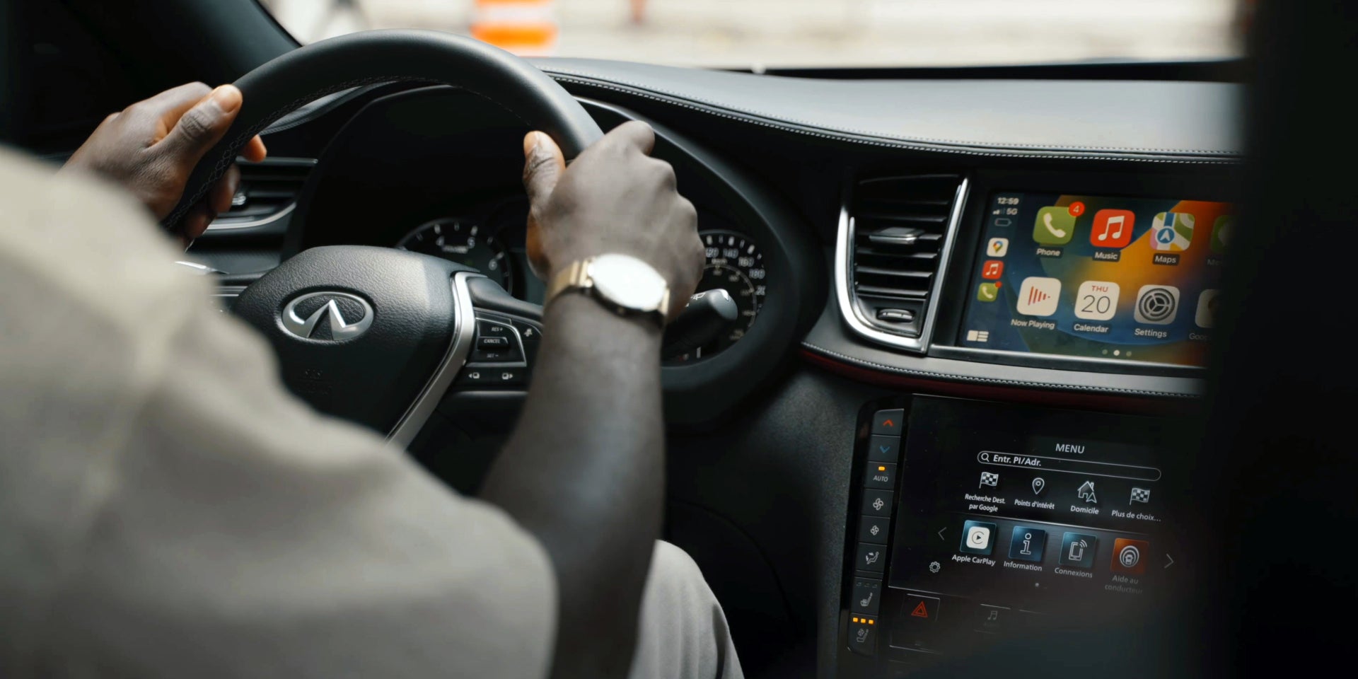 QX50 reimagines navigation with three-dimensional building graphics and traffic sign recognition, bringing an elevated level context and clarity to your wayfinding experience.