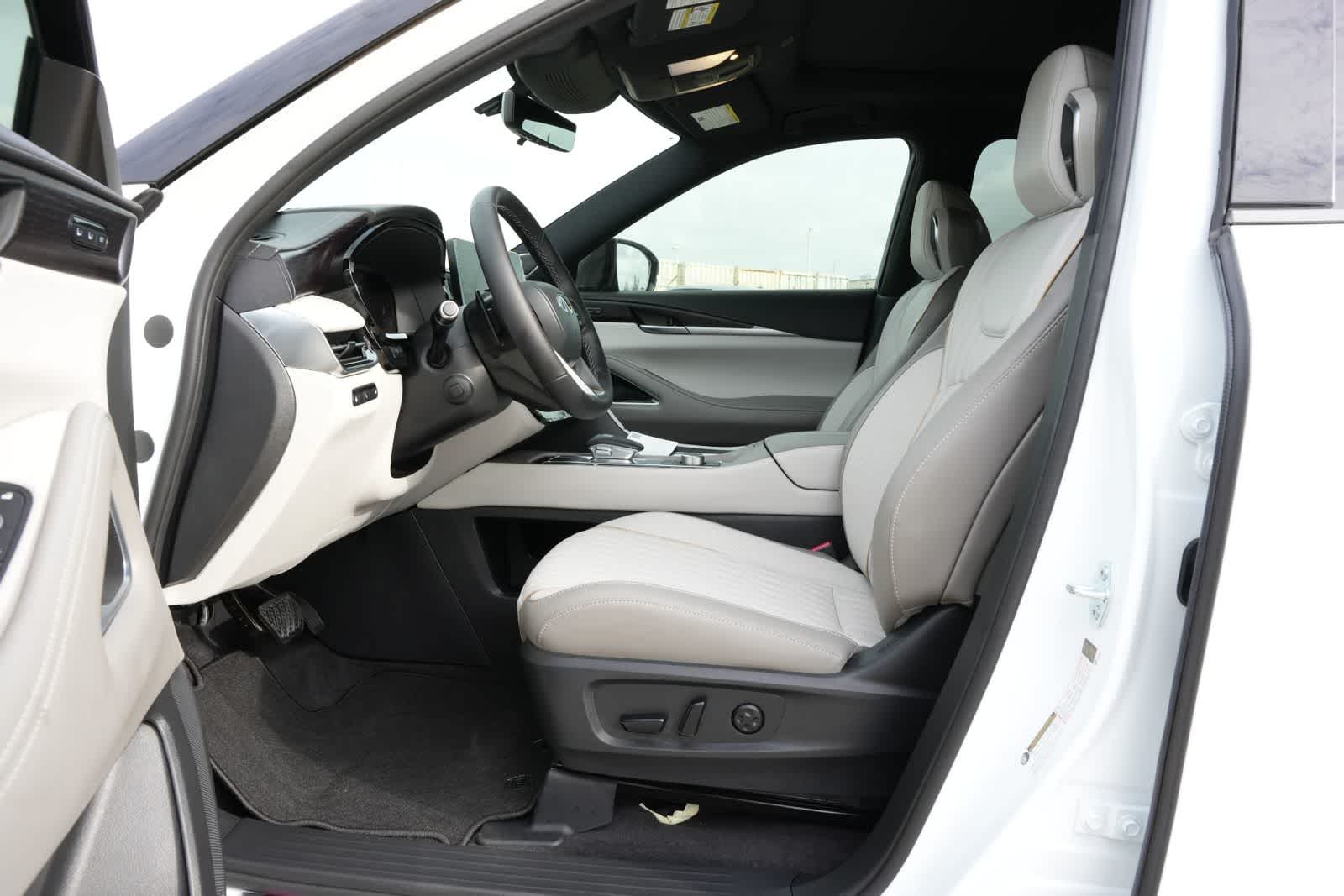 Radiant White/Black Obsidian 2026 INFINITI QX60 Autograph AWD 9-Speed Automatic 2.0L I4 PDI Turbocharged DOHC 16V 268hp 20 Speakers, 3rd row seats: bench, 4-Wheel Disc Brakes, ABS brakes, Air Conditioning, Alloy wheels, AM/FM radio: SiriusXM with 360L, Anti-whiplash front head restraints, Apple CarPlay/Android Auto, Auto High-beam Headlights, Auto tilt-away steering wheel, Auto-dimming door mirrors, Auto-dimming Rear-View mirror, Automatic temperature control, Bose Performance Series 17-Speaker Sound System, Brake assist, Bumpers: body-color, Climate Controlled Massaging Front Bucket Seats, Delay-off headlights, Driver door bin, Driver vanity mirror, Dual front impact airbags, Dual front side impact airbags, Electronic Stability Control, Emergency communication system: INFINITI InTouch, Four wheel independent suspension, Front anti-roll bar, Front Bucket Seats, Front Center Armrest, Front dual zone A/C, Front reading lights, Fully automatic headlights, Garage door transmitter: HomeLink, Genuine wood door panel insert, Heads-Up Display, Heated door mirrors, Heated front seats, Heated rear seats, Heated steering wheel, Illuminated entry, Knee airbag, Leather Shift Knob, Leather steering wheel, Low tire pressure warning, Memory seat, Navigation system: Google Built-in, Occupant sensing airbag, Outside temperature display, Overhead airbag, Overhead console, Panic alarm, Passenger door bin, Passenger vanity mirror, Power door mirrors, Power driver seat, Power Liftgate, Power moonroof: Panoramic, Power passenger seat, Power steering, Power windows, Radio data system, Radio: Klipsch Premiere Audio System, Rain sensing wipers, Rear air conditioning, Rear anti-roll bar, Rear reading lights, Rear side impact airbag, Rear window defroster, Rear window wiper, Reclining 3rd row seat, Remote keyless entry, Security system, Semi Aniline Leather-Appointed Seating Surfaces, Speed control, Speed-sensing steering, Speed-Sensitive Wipers, Split folding rear seat, Spoiler, Steering wheel memory, Steering wheel mounted audio controls, Tachometer, Telescoping steering wheel, Tilt steering wheel, Traction control, Trip computer, Turn signal indicator mirrors, Variably intermittent wipers, Ventilated front seats, Wheels: 20 x 8J Luxury Machined Aluminum Alloy.