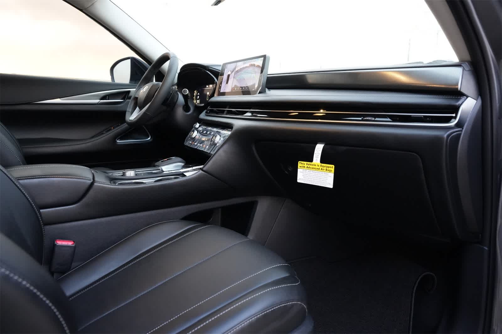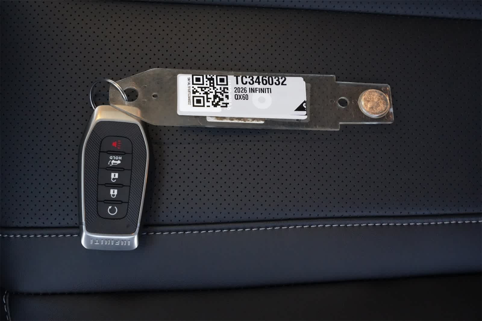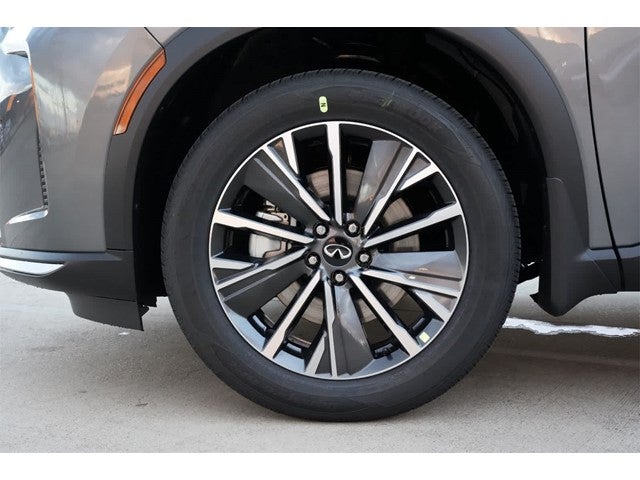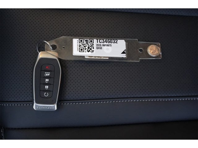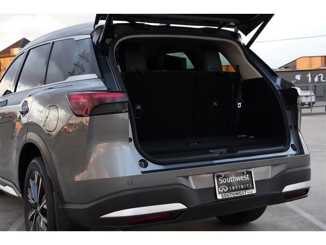 Graphite Shadow 2026 INFINITI QX60 LUXE AWD 9-Speed Automatic 2.0L I4 PDI Turbocharged DOHC 16V 268hp 17 Speakers, 3rd row seats: bench, 4-Wheel Disc Brakes, ABS brakes, Air Conditioning, Alloy wheels, AM/FM radio: SiriusXM with 360L, Anti-whiplash front head restraints, Apple CarPlay/Android Auto, Auto High-beam Headlights, Auto tilt-away steering wheel, Auto-dimming door mirrors, Auto-dimming Rear-View mirror, Automatic temperature control, Bose Performance Series 17-Speaker Sound System, Brake assist, Bumpers: body-color, Cargo Net, Cargo Package, Clear Rear Bumper Film, Climate Controlled Front Bucket Seats, Delay-off headlights, Driver door bin, Driver vanity mirror, Dual front impact airbags, Dual front side impact airbags, Electronic Stability Control, Emergency communication system: INFINITI InTouch, Four wheel independent suspension, Front anti-roll bar, Front Bucket Seats, Front Center Armrest, Front dual zone A/C, Front reading lights, Fully automatic headlights, Garage door transmitter: HomeLink, Heated door mirrors, Heated front seats, Heated rear seats, Heated steering wheel, Illuminated entry, Knee airbag, Leather Shift Knob, Leather steering wheel, Low tire pressure warning, Medic Kit, Memory seat, Navigation system: Google Built-in, Occupant sensing airbag, Outside temperature display, Overhead airbag, Overhead console, Panic alarm, Passenger door bin, Passenger vanity mirror, Power door mirrors, Power driver seat, Power Liftgate, Power moonroof: Panoramic, Power passenger seat, Power steering, Power windows, Radio data system, Radio: Klipsch Premium Audio System, Rain sensing wipers, Rear air conditioning, Rear anti-roll bar, Rear reading lights, Rear seat center armrest, Rear side impact airbag, Rear window defroster, Rear window wiper, Reclining 3rd row seat, Remote keyless entry, Security system, Speed control, Speed-sensing steering, Speed-Sensitive Wipers, Splash Guards, Split folding rear seat, Spoiler, Steering wheel memory, Steering wheel mounted audio controls, Tachometer, Tailorfit-Appointed Seating Surfaces, Telescoping steering wheel, Tilt steering wheel, Traction control, Trip computer, Turn signal indicator mirrors, Variably intermittent wipers, Ventilated front seats, Wheels: 20 x 8J Machined Aluminum Alloy.