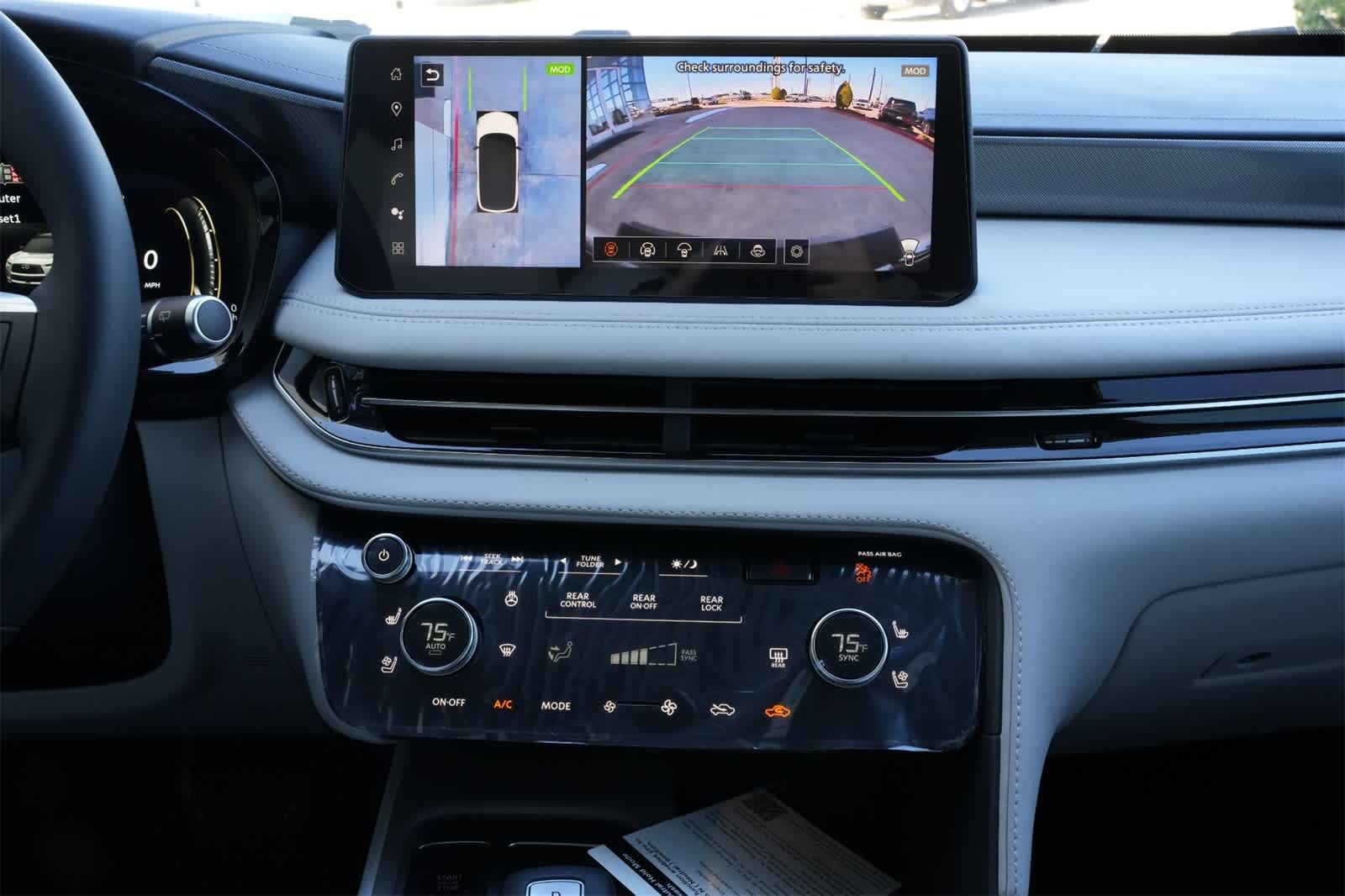 Mineral Black 2026 INFINITI QX60 LUXE AWD 9-Speed Automatic 2.0L I4 PDI Turbocharged DOHC 16V 268hp 17 Speakers, 3rd row seats: bench, 4-Wheel Disc Brakes, ABS brakes, Air Conditioning, Alloy wheels, AM/FM radio: SiriusXM with 360L, Anti-whiplash front head restraints, Apple CarPlay/Android Auto, Auto High-beam Headlights, Auto tilt-away steering wheel, Auto-dimming door mirrors, Auto-dimming Rear-View mirror, Automatic temperature control, Bose Performance Series 17-Speaker Sound System, Brake assist, Bumpers: body-color, Climate Controlled Front Bucket Seats, Delay-off headlights, Driver door bin, Driver vanity mirror, Dual front impact airbags, Dual front side impact airbags, Electronic Stability Control, Emergency communication system: INFINITI InTouch, Four wheel independent suspension, Front anti-roll bar, Front Bucket Seats, Front Center Armrest, Front dual zone A/C, Front reading lights, Fully automatic headlights, Garage door transmitter: HomeLink, Heated door mirrors, Heated front seats, Heated rear seats, Heated steering wheel, Illuminated entry, Knee airbag, Leather Shift Knob, Leather steering wheel, Low tire pressure warning, Memory seat, Navigation system: Google Built-in, Occupant sensing airbag, Outside temperature display, Overhead airbag, Overhead console, Panic alarm, Passenger door bin, Passenger vanity mirror, Power door mirrors, Power driver seat, Power Liftgate, Power moonroof: Panoramic, Power passenger seat, Power steering, Power windows, Radio data system, Radio: Klipsch Premium Audio System, Rain sensing wipers, Rear air conditioning, Rear anti-roll bar, Rear reading lights, Rear seat center armrest, Rear side impact airbag, Rear window defroster, Rear window wiper, Reclining 3rd row seat, Remote keyless entry, Security system, Speed control, Speed-sensing steering, Speed-Sensitive Wipers, Split folding rear seat, Spoiler, Steering wheel memory, Steering wheel mounted audio controls, Tachometer, Tailorfit-Appointed Seating Surfaces, Telescoping steering wheel, Tilt steering wheel, Traction control, Trip computer, Turn signal indicator mirrors, Variably intermittent wipers, Ventilated front seats, Wheels: 20 x 8J Machined Aluminum Alloy.