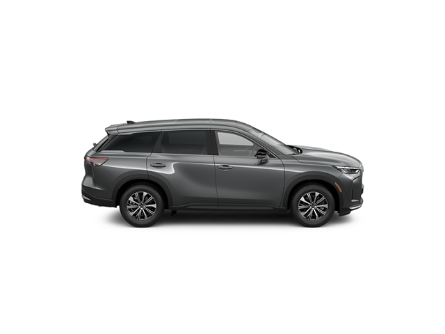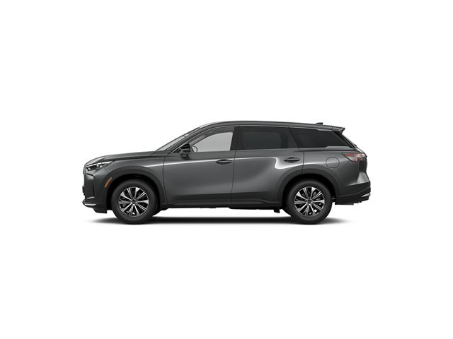 Graphite Shadow 2026 INFINITI QX60 PURE FWD 9-Speed Automatic 2.0L I4 PDI Turbocharged DOHC 16V 268hp 3rd row seats: bench, 4-Wheel Disc Brakes, 9 Speakers, ABS brakes, Air Conditioning, Alloy wheels, AM/FM radio: SiriusXM with 360L, Anti-whiplash front head restraints, Apple CarPlay/Android Auto, Auto High-beam Headlights, Auto-dimming Rear-View mirror, Automatic temperature control, Blind Spot Warning, Brake assist, Bumpers: body-color, Delay-off headlights, Driver door bin, Driver vanity mirror, Dual front impact airbags, Dual front side impact airbags, Electronic Stability Control, Emergency communication system: INFINITI InTouch, Four wheel independent suspension, Front anti-roll bar, Front Bucket Seats, Front Center Armrest, Front dual zone A/C, Front reading lights, Fully automatic headlights, Heated door mirrors, Heated Front Bucket Seats, Heated front seats, Heated steering wheel, Illuminated entry, Knee airbag, Leather Shift Knob, Leather steering wheel, Low tire pressure warning, Memory seat, Navigation system: Google Built-in, Occupant sensing airbag, Outside temperature display, Overhead airbag, Overhead console, Panic alarm, Passenger door bin, Passenger vanity mirror, Power door mirrors, Power driver seat, Power Liftgate, Power moonroof: Panoramic, Power passenger seat, Power steering, Power windows, Radio data system, Radio: AM/FM Audio System, Rain sensing wipers, Rear air conditioning, Rear anti-roll bar, Rear Parking Sensors, Rear reading lights, Rear seat center armrest, Rear side impact airbag, Rear window defroster, Rear window wiper, Reclining 3rd row seat, Remote keyless entry, Security system, Speed control, Speed-sensing steering, Speed-Sensitive Wipers, Split folding rear seat, Spoiler, Steering wheel mounted audio controls, Tachometer, Tailorfit-Appointed Seating Surfaces, Telescoping steering wheel, Tilt steering wheel, Traction control, Trip computer, Turn signal indicator mirrors, Variably intermittent wipers, Wheels: 20 x 8J Sporty Machined Aluminum Alloy.