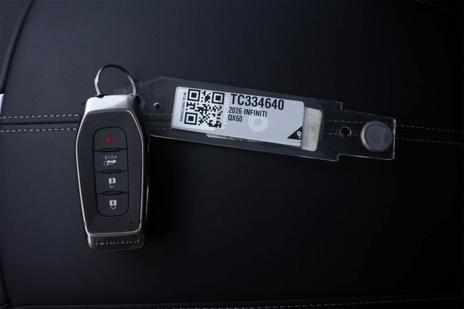 Graphite Shadow 2026 INFINITI QX60 PURE FWD 9-Speed Automatic 2.0L I4 PDI Turbocharged DOHC 16V 268hp 3rd row seats: bench, 4-Wheel Disc Brakes, 9 Speakers, ABS brakes, Air Conditioning, Alloy wheels, AM/FM radio: SiriusXM with 360L, Anti-whiplash front head restraints, Apple CarPlay/Android Auto, Auto High-beam Headlights, Auto-dimming Rear-View mirror, Automatic temperature control, Blind Spot Warning, Brake assist, Bumpers: body-color, Cargo Blocks, Cargo Mat, Cargo Net, Cargo Package, Clear Rear Bumper Film, Delay-off headlights, Driver door bin, Driver vanity mirror, Dual front impact airbags, Dual front side impact airbags, Electronic Stability Control, Emergency communication system: INFINITI InTouch, Four wheel independent suspension, Front anti-roll bar, Front Bucket Seats, Front Center Armrest, Front dual zone A/C, Front reading lights, Fully automatic headlights, Heated door mirrors, Heated Front Bucket Seats, Heated front seats, Heated steering wheel, Illuminated entry, Knee airbag, Leather Shift Knob, Leather steering wheel, Low tire pressure warning, Medic Kit, Memory seat, Navigation system: Google Built-in, Occupant sensing airbag, Outside temperature display, Overhead airbag, Overhead console, Panic alarm, Passenger door bin, Passenger vanity mirror, Power door mirrors, Power driver seat, Power Liftgate, Power moonroof: Panoramic, Power passenger seat, Power steering, Power windows, Radio data system, Radio: AM/FM Audio System, Rain sensing wipers, Rear air conditioning, Rear anti-roll bar, Rear Parking Sensors, Rear reading lights, Rear seat center armrest, Rear side impact airbag, Rear window defroster, Rear window wiper, Reclining 3rd row seat, Remote keyless entry, Security system, Speed control, Speed-sensing steering, Speed-Sensitive Wipers, Split folding rear seat, Spoiler, Steering wheel mounted audio controls, Tachometer, Tailorfit-Appointed Seating Surfaces, Telescoping steering wheel, Tilt steering wheel, Traction control, Trip computer, Turn signal indicator mirrors, Variably intermittent wipers, Wheels: 20 x 8J Sporty Machined Aluminum Alloy.
