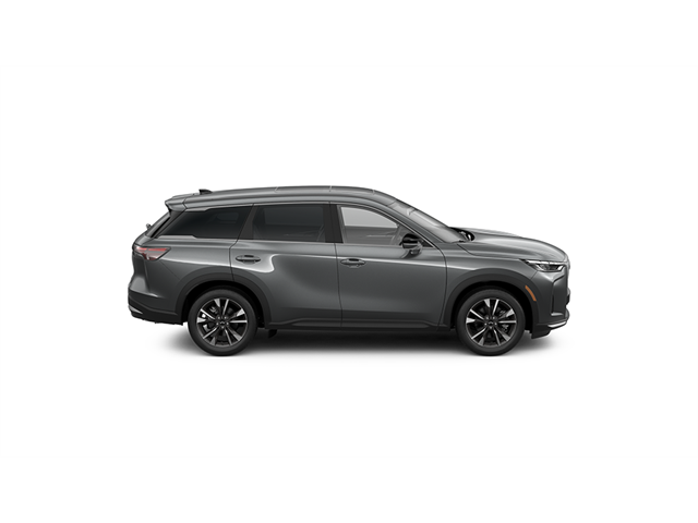 Graphite Shadow 2026 INFINITI QX60 PURE FWD 9-Speed Automatic 2.0L I4 PDI Turbocharged DOHC 16V 268hp 3rd row seats: bench, 4-Wheel Disc Brakes, 9 Speakers, ABS brakes, Air Conditioning, Alloy wheels, AM/FM radio: SiriusXM with 360L, Anti-whiplash front head restraints, Apple CarPlay/Android Auto, Auto High-beam Headlights, Auto-dimming Rear-View mirror, Automatic temperature control, Blind Spot Warning, Brake assist, Bumpers: body-color, Cargo Blocks, Cargo Mat, Cargo Net, Cargo Package, Clear Rear Bumper Film, Delay-off headlights, Driver door bin, Driver vanity mirror, Dual front impact airbags, Dual front side impact airbags, Electronic Stability Control, Emergency communication system: INFINITI InTouch, Four wheel independent suspension, Front anti-roll bar, Front Bucket Seats, Front Center Armrest, Front dual zone A/C, Front reading lights, Fully automatic headlights, Heated door mirrors, Heated Front Bucket Seats, Heated front seats, Heated steering wheel, Illuminated entry, Knee airbag, Leather Shift Knob, Leather steering wheel, Low tire pressure warning, Medic Kit, Memory seat, Navigation system: Google Built-in, Occupant sensing airbag, Outside temperature display, Overhead airbag, Overhead console, Panic alarm, Passenger door bin, Passenger vanity mirror, Power door mirrors, Power driver seat, Power Liftgate, Power moonroof: Panoramic, Power passenger seat, Power steering, Power windows, Radio data system, Radio: AM/FM Audio System, Rain sensing wipers, Rear air conditioning, Rear anti-roll bar, Rear Parking Sensors, Rear reading lights, Rear seat center armrest, Rear side impact airbag, Rear window defroster, Rear window wiper, Reclining 3rd row seat, Remote keyless entry, Security system, Speed control, Speed-sensing steering, Speed-Sensitive Wipers, Split folding rear seat, Spoiler, Steering wheel mounted audio controls, Tachometer, Tailorfit-Appointed Seating Surfaces, Telescoping steering wheel, Tilt steering wheel, Traction control, Trip computer, Turn signal indicator mirrors, Variably intermittent wipers, Wheels: 20 x 8J Sporty Machined Aluminum Alloy.