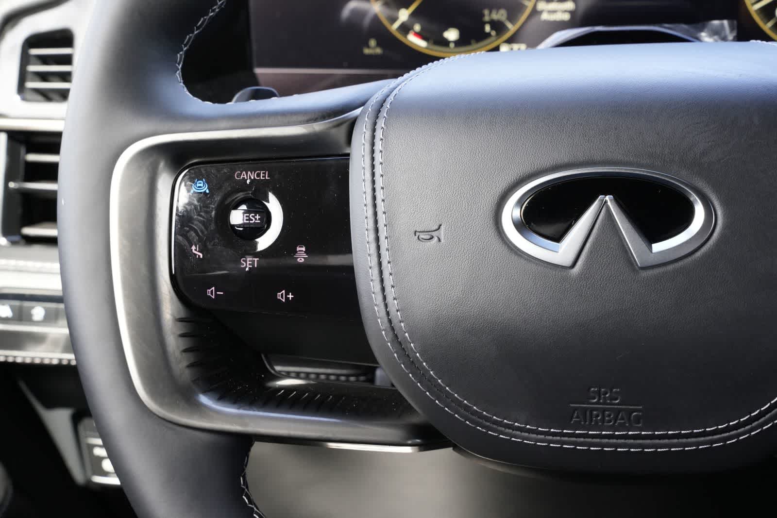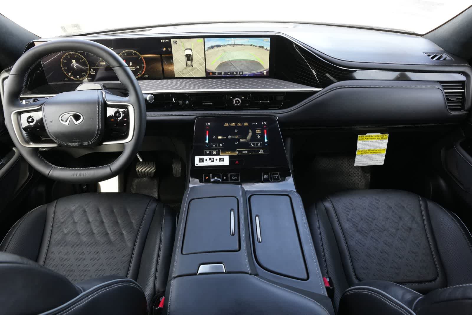 Radiant White 2026 INFINITI QX80 AUTOGRAPH 4WD 9-Speed Automatic 3.5L V6 DOHC 24V 3rd row seats: bench, 4-Wheel Disc Brakes, ABS brakes, Adaptive suspension, Air Conditioning, Alloy wheels, AM/FM radio: SiriusXM with 360L, Anti-whiplash front head restraints, Apple CarPlay/Android Auto, Audio memory, Auto High-beam Headlights, Auto tilt-away steering wheel, Auto-dimming door mirrors, Auto-dimming Rear-View mirror, Auto-leveling suspension, Automatic temperature control, Brake assist, Bumpers: body-color, Compass, Delay-off headlights, Driver door bin, Driver vanity mirror, Dual front impact airbags, Dual front side impact airbags, Electronic Stability Control, Emergency communication system: INFINITI InTouch, Four wheel independent suspension, Front anti-roll bar, Front Bucket Seats, Front Center Armrest, Front dual zone A/C, Front reading lights, Fully automatic headlights, Garage door transmitter: myQ Connected Garage, Genuine wood dashboard insert, Genuine wood door panel insert, Heads-Up Display, Heated and Climate Controlled Front Bucket Seats with Massage, Heated door mirrors, Heated front seats, Heated rear seats, Heated steering wheel, HVAC memory, Illuminated entry, Knee airbag, Leather steering wheel, Low tire pressure warning, Memory seat, Navigation system: Google Built-in, Occupant sensing airbag, Outside temperature display, Overhead airbag, Overhead console, Panic alarm, Passenger door bin, Passenger vanity mirror, Power door mirrors, Power driver seat, Power Liftgate, Power moonroof, Power passenger seat, Power steering, Power windows, Radio data system, Radio: Klipsch Premiere Audio System, Rain sensing wipers, Rear air conditioning, Rear anti-roll bar, Rear reading lights, Rear seat center armrest, Rear window defroster, Rear window wiper, Reclining 3rd row seat, Remote keyless entry, Security system, Semi-Aniline Premium Leather Seating Surfaces, Speed control, Speed-sensing steering, Split folding rear seat, Spoiler, Steering wheel memory, Steering wheel mounted audio controls, Tachometer, Telescoping steering wheel, Tilt steering wheel, Traction control, Trip computer, Turn signal indicator mirrors, Variably intermittent wipers, Ventilated front seats, Ventilated rear seats, Wheels: 22 x 8.5J Cast Aluminum-Alloy.