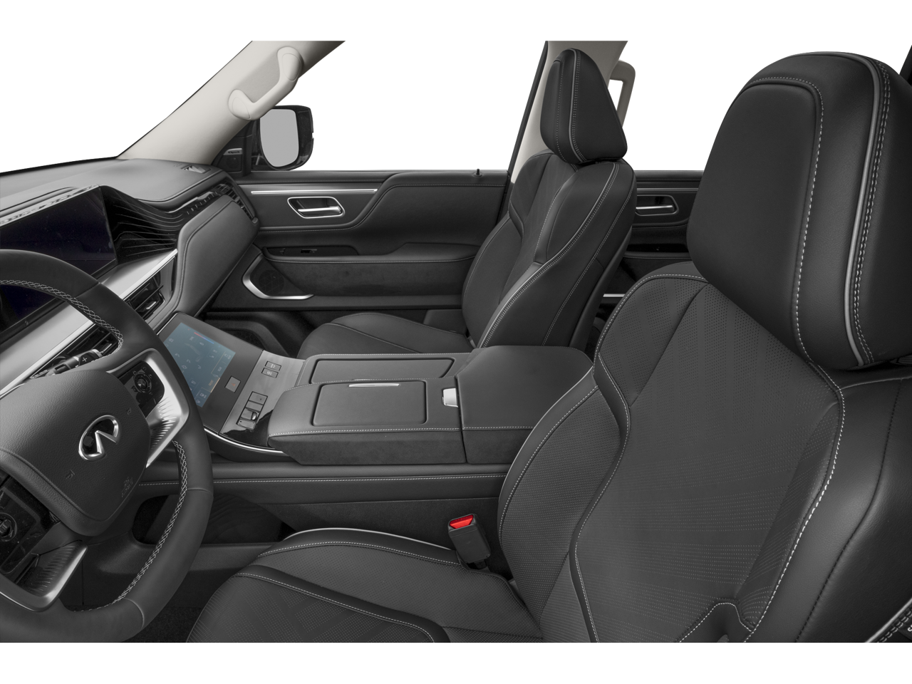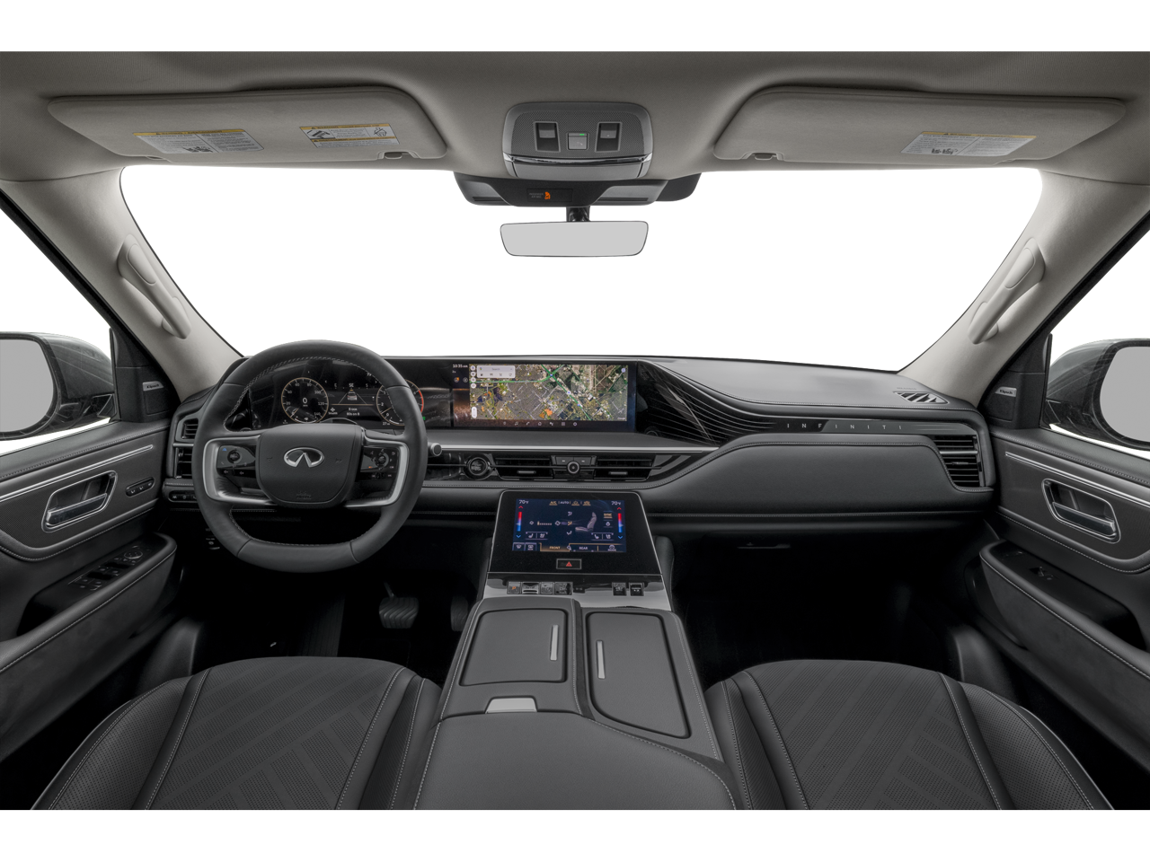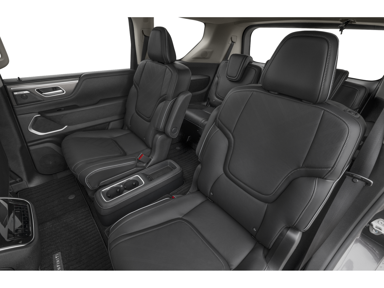 Black Obsidian 2026 INFINITI QX80 LUXE RWD 9-Speed Automatic 3.5L V6 DOHC 24V 14 Speakers, 3rd row seats: bench, 4-Wheel Disc Brakes, ABS brakes, Adaptive suspension, Air Conditioning, Alloy wheels, AM/FM radio: SiriusXM with 360L, Anti-whiplash front head restraints, Apple CarPlay/Android Auto, Audio memory, Auto High-beam Headlights, Auto tilt-away steering wheel, Auto-dimming door mirrors, Auto-dimming Rear-View mirror, Auto-leveling suspension, Automatic temperature control, Brake assist, Bumpers: body-color, Cargo Blocks/Stabilizers, Cargo Net, Cargo Package, Carpeted Cargo Area Protector, Compass, Console Net, Delay-off headlights, Driver door bin, Driver vanity mirror, Dual front impact airbags, Dual front side impact airbags, Electronic Stability Control, Emergency communication system: INFINITI InTouch, Four wheel independent suspension, Front anti-roll bar, Front Bucket Seats, Front Center Armrest, Front dual zone A/C, Front reading lights, Fully automatic headlights, Garage door transmitter: myQ Connected Garage, Heads-Up Display, Heated and Climate Controlled Front Bucket Seats, Heated door mirrors, Heated front seats, Heated rear seats, Heated steering wheel, HVAC memory, Illuminated entry, INFINITI Radiant Illuminated Silver Kick Plates, Knee airbag, Leather Seating Surfaces, Leather steering wheel, Low tire pressure warning, Memory seat, Navigation system: Google Built-in, Occupant sensing airbag, Outside temperature display, Overhead airbag, Overhead console, Panic alarm, Passenger door bin, Passenger vanity mirror, Power door mirrors, Power driver seat, Power Liftgate, Power moonroof, Power passenger seat, Power steering, Power windows, Radio data system, Radio: Klipsch Premium Audio System, Rain sensing wipers, Rear air conditioning, Rear anti-roll bar, Rear reading lights, Rear seat center armrest, Rear window defroster, Rear window wiper, Reclining 3rd row seat, Remote keyless entry, Security system, Soft-Sided Cargo Cooler, Speed control, Speed-sensing steering, Splash Guards, Split folding rear seat, Spoiler, Steering wheel memory, Steering wheel mounted audio controls, Tachometer, Telescoping steering wheel, Tilt steering wheel, Traction control, Trip computer, Turn signal indicator mirrors, Variably intermittent wipers, Ventilated front seats, Ventilated rear seats, Wheels: 22 x 8.5J Cast Aluminum Alloy.