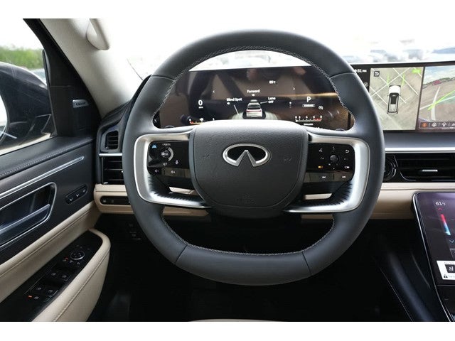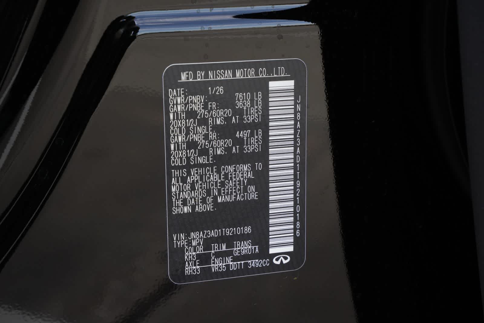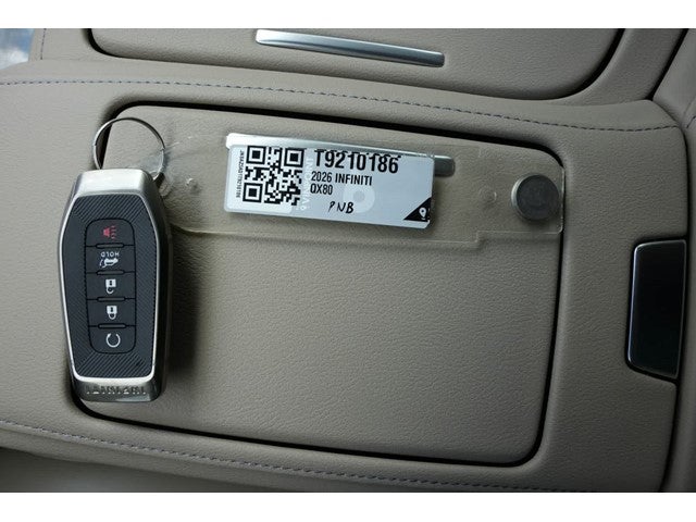 Black Obsidian 2026 INFINITI QX80 PURE RWD 9-Speed Automatic 3.5L V6 DOHC 24V 14 Speakers, 3rd row seats: bench, 4-Wheel Disc Brakes, ABS brakes, Air Conditioning, Alloy wheels, AM/FM radio: SiriusXM with 360L, Anti-whiplash front head restraints, Apple CarPlay/Android Auto, Audio memory, Auto High-beam Headlights, Auto tilt-away steering wheel, Auto-dimming door mirrors, Auto-dimming Rear-View mirror, Automatic temperature control, Brake assist, Bumpers: body-color, Compass, Delay-off headlights, Driver door bin, Driver vanity mirror, Dual front impact airbags, Dual front side impact airbags, Electronic Stability Control, Emergency communication system: INFINITI InTouch, Four wheel independent suspension, Front anti-roll bar, Front Bucket Seats, Front Center Armrest, Front dual zone A/C, Front reading lights, Fully automatic headlights, Garage door transmitter: myQ Connected Garage, Heated door mirrors, Heated Front Bucket Seats, Heated front seats, Heated rear seats, Heated steering wheel, HVAC memory, Illuminated entry, Knee airbag, Leather steering wheel, Low tire pressure warning, Memory seat, Navigation system: Google Built-in, Occupant sensing airbag, Outside temperature display, Overhead airbag, Overhead console, Panic alarm, Passenger door bin, Passenger vanity mirror, Power door mirrors, Power driver seat, Power Liftgate, Power moonroof, Power passenger seat, Power steering, Power windows, Radio data system, Radio: Klipsch Premium Audio System, Rain sensing wipers, Rear air conditioning, Rear anti-roll bar, Rear reading lights, Rear seat center armrest, Rear window defroster, Rear window wiper, Reclining 3rd row seat, Remote keyless entry, Security system, Speed control, Speed-sensing steering, Split folding rear seat, Spoiler, Steering wheel memory, Steering wheel mounted audio controls, Tachometer, Tailorfit-Appointed Seating Surfaces, Telescoping steering wheel, Tilt steering wheel, Traction control, Trip computer, Turn signal indicator mirrors, Variably intermittent wipers, Wheels: 20 x 8.5J Aluminum Alloy.