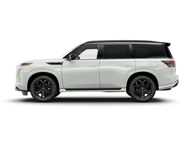 Radiant White/Black Obsidian 2026 INFINITI QX80 SPORT 4WD 9-Speed Automatic 3.5L V6 DOHC 24V 3rd row seats: bench, 4-Wheel Disc Brakes, ABS brakes, Adaptive suspension, Air Conditioning, Alloy wheels, AM/FM radio: SiriusXM with 360L, Anti-whiplash front head restraints, Apple CarPlay/Android Auto, Audio memory, Auto High-beam Headlights, Auto tilt-away steering wheel, Auto-dimming door mirrors, Auto-dimming Rear-View mirror, Auto-leveling suspension, Automatic temperature control, Brake assist, Compass, Delay-off headlights, Driver door bin, Driver vanity mirror, Dual front impact airbags, Dual front side impact airbags, Electronic Stability Control, Emergency communication system: INFINITI InTouch, Four wheel independent suspension, Front anti-roll bar, Front Bucket Seats, Front Center Armrest, Front dual zone A/C, Front reading lights, Fully automatic headlights, Garage door transmitter: HomeLink, Genuine wood dashboard insert, Genuine wood door panel insert, Heads-Up Display, Heated and Climate Controlled Front Bucket Seats with Massage, Heated door mirrors, Heated front seats, Heated rear seats, Heated steering wheel, HVAC memory, Illuminated entry, Knee airbag, Leather steering wheel, Low tire pressure warning, Memory seat, Navigation system: Google Built-in, Occupant sensing airbag, Outside temperature display, Overhead airbag, Overhead console, Panic alarm, Passenger door bin, Passenger vanity mirror, Power door mirrors, Power driver seat, Power Liftgate, Power moonroof, Power passenger seat, Power steering, Power windows, Radio data system, Radio: Klipsch Premiere Audio System, Rain sensing wipers, Rear air conditioning, Rear anti-roll bar, Rear reading lights, Rear seat center armrest, Rear window defroster, Rear window wiper, Reclining 3rd row seat, Remote keyless entry, Security system, Speed control, Speed-sensing steering, Split folding rear seat, Spoiler, Steering wheel memory, Steering wheel mounted audio controls, Tachometer, Telescoping steering wheel, Tilt steering wheel, Traction control, Trip computer, Turn signal indicator mirrors, Unique SPORT Semi-Aniline Leather Seating Surfaces, Variably intermittent wipers, Ventilated front seats, Ventilated rear seats, Wheels: 22 x 8.5J Unique SPORT Alloy.