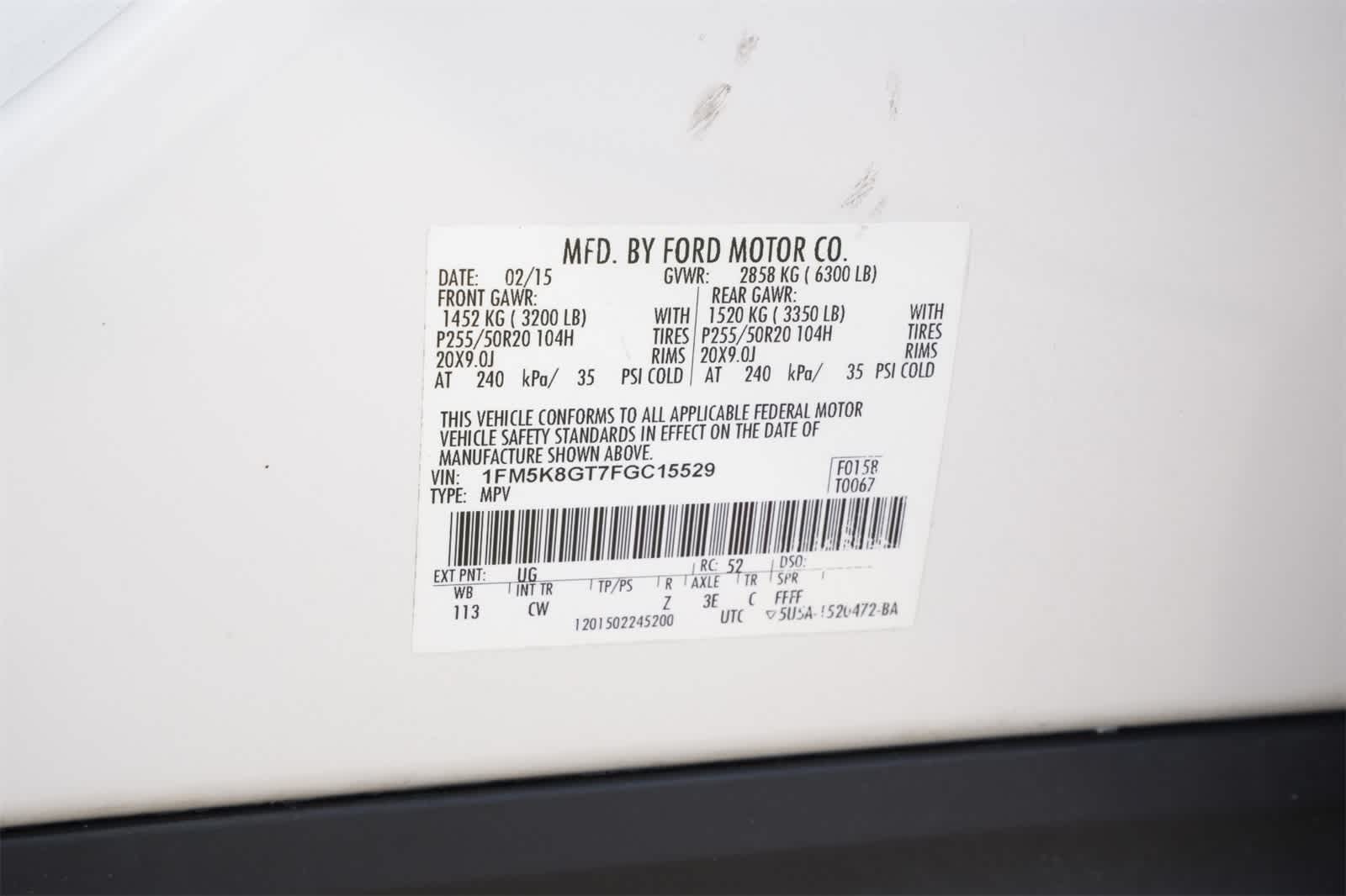 4WD, 12 Speakers, 20 Machined Aluminum w/Painted Pockets Wheels, 3.16 Axle Ratio, 3rd row seats: split-bench, 4-Wheel Disc Brakes, ABS brakes, Air Conditioning, Alloy wheels, AM/FM radio: SiriusXM, Auto-dimming Rear-View mirror, Automatic temperature control, Brake assist, Bumpers: body-color, CD player, Compass, Delay-off headlights, Driver door bin, Driver vanity mirror, Dual front impact airbags, Dual front side impact airbags, Electronic Stability Control, Exterior Parking Camera Rear, Four wheel independent suspension, Front anti-roll bar, Front Bucket Seats, Front Center Armrest, Front dual zone A/C, Front fog lights, Front reading lights, Fully automatic headlights, Heated door mirrors, Heated front seats, Illuminated entry, Knee airbag, Low tire pressure warning, Occupant sensing airbag, Outside temperature display, Overhead airbag, Overhead console, Panic alarm, Passenger door bin, Passenger vanity mirror, Perforated Leather-Trimmed Heated Bucket Seats, Power door mirrors, Power driver seat, Power passenger seat, Power steering, Power windows, Premium audio system: Sony, Radio data system, Radio: Sony Audio System w/12-Speakers, Rear air conditioning, Rear anti-roll bar, Rear Parking Sensors, Rear reading lights, Rear seat center armrest, Rear window defroster, Rear window wiper, Remote keyless entry, Roof rack: rails only, Security system, Speed control, Speed-sensing steering, Speed-Sensitive Wipers, Split folding rear seat, Spoiler, Steering wheel mounted audio controls, SYNC w/MyFord Touch, Tachometer, Telescoping steering wheel, Tilt steering wheel, Traction control, Trip computer, Turn signal indicator mirrors, Variably intermittent wipers, 4WD.