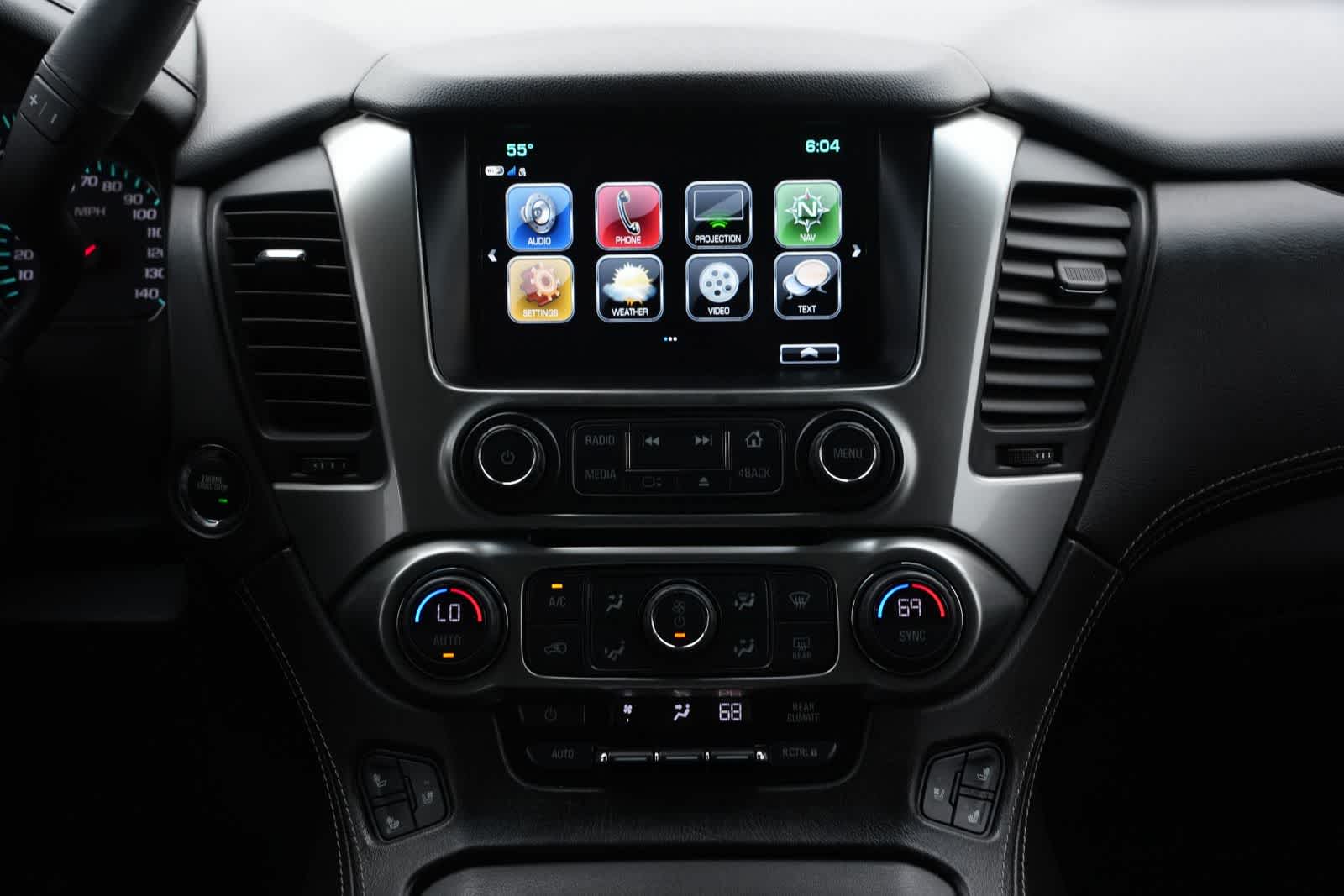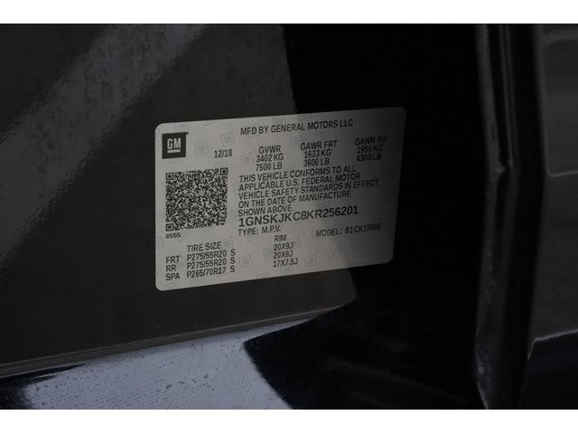 10 Speakers, 12-Volt Auxiliary Power Outlet (5), 1st & 2nd Row Color-Keyed Carpeted Floor Mats, 3.08 Rear Axle Ratio, 3rd Row 60/40 Power Fold Split-Bench, 3rd Row DVD Screen, 3rd row seats: split-bench, 4-Wheel Antilock Disc Brakes, 4-Wheel Disc Brakes, 6-Way Power Front Passenger Seat Adjuster, ABS brakes, Adaptive suspension, Adjustable pedals, Air Conditioning, Alloy wheels, AM/FM radio: SiriusXM, AM/FM Stereo w/Navigation, Apple CarPlay/Android Auto, Auto High-beam Headlights, Auto-dimming door mirrors, Auto-Dimming Inside Rear-View Mirror, Auto-dimming Rear-View mirror, Automatic temperature control, Black Assist Steps, Bodyside moldings, Bose Centerpoint Premium 10-Speaker Surround Sound, Brake assist, Bumpers: body-color, CD player, Color-Keyed Carpeting Floor Covering, Compass, Delay-off headlights, Driver door bin, Driver Inboard & Front Passenger Airbags, Driver vanity mirror, Dual front impact airbags, Dual front side impact airbags, Electronic Cruise Control w/Set & Resume Speed, Electronic Stability Control, Emergency communication system: OnStar and Chevrolet connected services capable, Enhanced Driver Alert Package, Exterior Parking Camera Rear, Floor Console w/Storage Area, Fog Lamps, Forward Collision Alert, Front & Rear Park Assist, Front anti-roll bar, Front Bucket Seats, Front Center Armrest, Front dual zone A/C, Front fog lights, Front reading lights, Front wheel independent suspension, Fully automatic headlights, Garage door transmitter, Hands-Free Power Liftgate, HD Radio, Headphones, Heated & Ventilated Driver & Front Passenger Seats, Heated & Ventilated Front Reclining Bucket Seats, Heated 2nd Row Outboard Seats, Heated door mirrors, Heated front seats, Heated Leather Wrapped Steering Wheel, Heated rear seats, Heated steering wheel, High-Intensity Discharge Headlights, Illuminated entry, IntelliBeam w/Automatic High Beam On/Off, Lane Change Alert w/Side Blind Zone Alert, Lane Keep Assist w/Lane Departure Warning, Leather Shift Knob, License Plate Front Mounting Package, Low Speed Forward Automatic Braking, Low tire pressure warning, Magnetic Ride Control Suspension Package, Memory seat, Memory Settings, Navigation System, Occupant sensing airbag, Outside temperature display, Overhead airbag, Overhead console, Panic alarm, Passenger door bin, Passenger vanity mirror, Passive Entry System, Pedal memory, Perforated Leather-Appointed Seat Trim, Power door mirrors, Power driver seat, Power Folding & Adjustable Heated Outside Mirrors, Power Liftgate, Power passenger seat, Power Release 2nd Row Bucket Seats, Power steering, Power Tilt & Telescoping Steering Column, Power Tilt-Sliding Sunroof w/Express-Open/Close, Power windows, Power-Adjustable Accelerator & Brake Pedals, Preferred Equipment Group 1LZ, Push Button Keyless Start, Rain sensing wipers, Rear air conditioning, Rear anti-roll bar, Rear audio controls, Rear Cross Traffic Alert, Rear reading lights, Rear Seat Entertainment System, Rear window defroster, Rear window wiper, Remote keyless entry, Remote Vehicle Start, Roof rack: rails only, Roof-Mounted Luggage Rack Side Rails, Safety Alert Seat, Security system, Single-Slot CD/MP3 Player, SiriusXM NavTraffic, SiriusXM Radio, Speed control, Speed-sensing steering, Split folding rear seat, Spoiler, Steering wheel memory, Steering wheel mounted audio controls, Sun, Entertainment & Destinations Package, Tachometer, Telescoping steering wheel, Tilt steering wheel, Traction control, Trip computer, Turn signal indicator mirrors, Universal Home Remote, Variably intermittent wipers, Ventilated front seats, Voltmeter, Wheel Locks (Set of 4) (LPO), Wheels: 20 x 9 Polished-Aluminum, Wireless Charging.