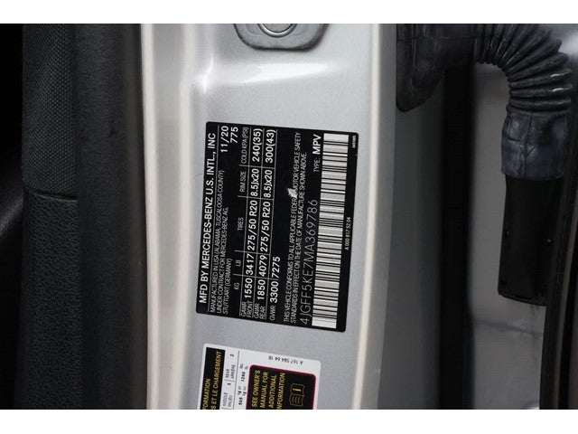 13 Speakers, 3.27 Axle Ratio, 3rd row seats: split-bench, 4-Way Driver Lumbar Support, 4-Wheel Disc Brakes, 7-Seat Configuration, ABS brakes, Active Brake Assist w/Cross-Traffic Function, Adaptive suspension, Air Conditioning, Alloy wheels, AM/FM radio: SiriusXM, Apple CarPlay®/Android Auto®, Auto High-beam Headlights, Auto tilt-away steering wheel, Auto-dimming door mirrors, Auto-dimming Rear-View mirror, Auto-leveling suspension, Automatic temperature control, Brake assist, Bumpers: body-color, Burmester® Surround Sound System, Child-Seat-Sensing Airbag, Compass, Delay-off headlights, Driver door bin, Driver vanity mirror, Dual front impact airbags, Dual front side impact airbags, Electronic Stability Control, Emergency communication system: eCall Emergency System, Four wheel independent suspension, Front anti-roll bar, Front Bucket Seats, Front Center Armrest w/Storage, Front dual zone A/C, Front reading lights, Fully automatic headlights, Garage door transmitter: HomeLink, Genuine wood console insert, Genuine wood dashboard insert, Genuine wood door panel insert, Head restraints memory, Heated and Ventilated Power Front Seats w/Memory, Heated door mirrors, Heated front seats, Illuminated entry, Knee airbag, Low tire pressure warning, MB-Tex Upholstery, Memory seat, Navigation system: MB Navigation, Occupant sensing airbag, Outside temperature display, Overhead airbag, Overhead console, Panic alarm, Passenger door bin, Passenger vanity mirror, Power adjustable front head restraints, Power door mirrors, Power driver seat, Power Liftgate, Power moonroof, Power passenger seat, Power steering, Power windows, Premium audio system: MBUX, Radio: MBUX Multimedia System, Rain sensing wipers, Rear air conditioning, Rear anti-roll bar, Rear dual zone A/C, Rear fog lights, Rear reading lights, Rear seat center armrest, Rear window defroster, Rear window wiper, Remote keyless entry, Roof rack: rails only, Security system, Speed control, Speed-sensing steering, Speed-Sensitive Wipers, Split folding rear seat, Spoiler, Steering wheel memory, Steering wheel mounted audio controls, Tachometer, Telescoping steering wheel, Tilt steering wheel, Traction control, Trip computer, Turn signal indicator mirrors, Variably intermittent wipers, Ventilated front seats, Weather band radio, Wheels: 20 8-Spoke.