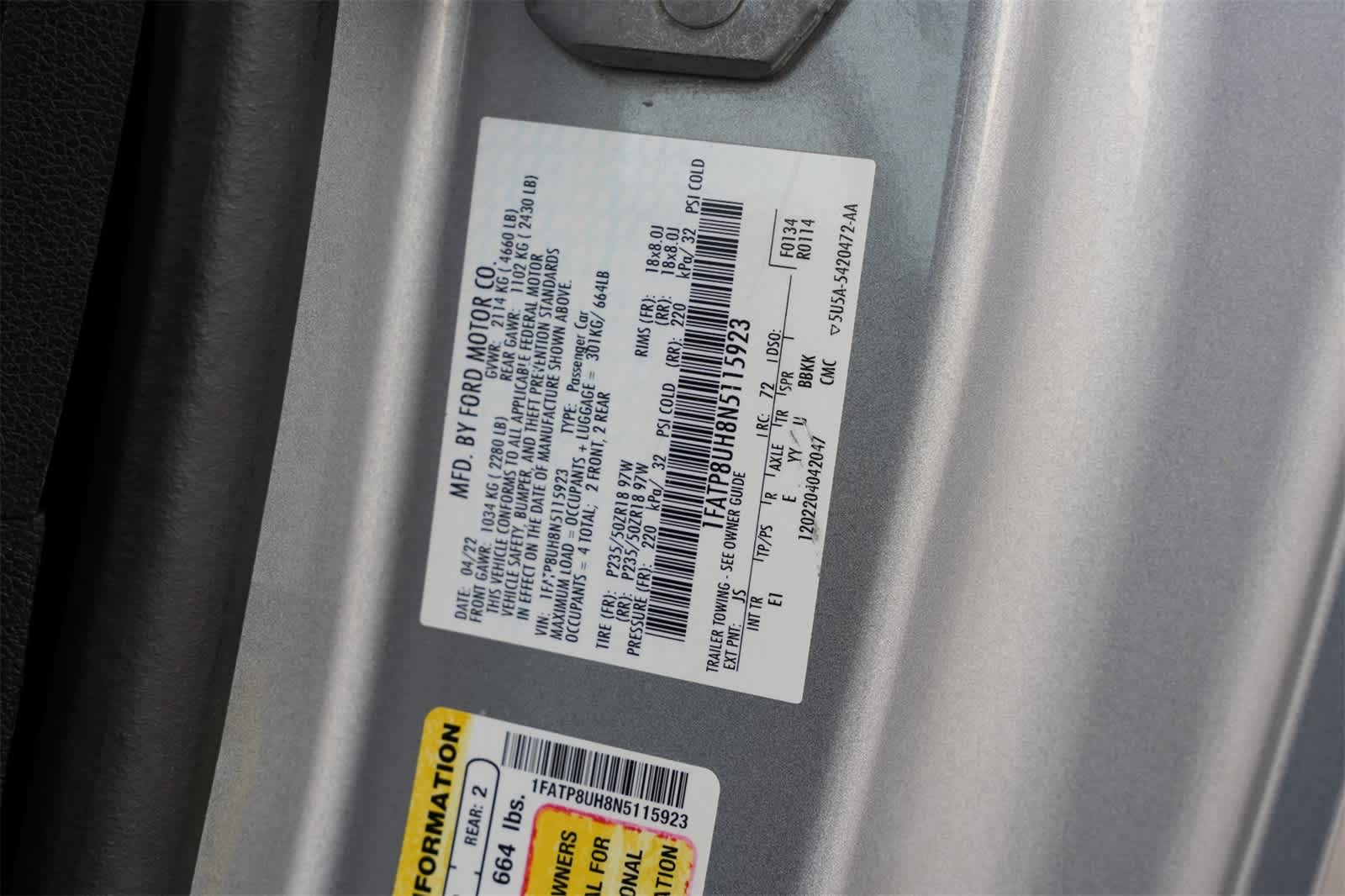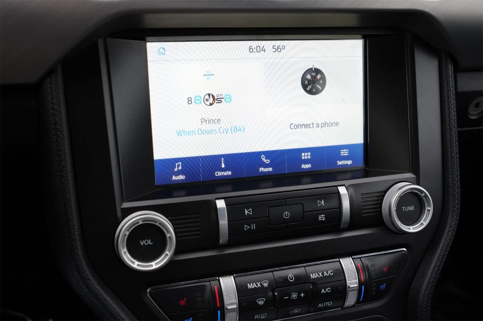 4-Wheel Disc Brakes, ABS brakes, Air Conditioning, Alloy wheels, AM/FM Stereo, Auto High-beam Headlights, Auto-dimming Rear-View mirror, Brake assist, Bumpers: body-color, Compass, Convertible roof lining, Delay-off headlights, Driver door bin, Driver vanity mirror, Dual front impact airbags, Dual front side impact airbags, Electronic Stability Control, Emergency communication system: 911 Assist, Exterior Parking Camera Rear, Four wheel independent suspension, Front anti-roll bar, Front Bucket Seats, Front Center Armrest, Front reading lights, Fully automatic headlights, Glass rear window, Illuminated entry, Knee airbag, Leather Shift Knob, Low tire pressure warning, Occupant sensing airbag, Outside temperature display, Overhead console, Panic alarm, Passenger door bin, Passenger vanity mirror, Power convertible roof, Power door mirrors, Power steering, Power windows, Radio data system, Rain sensing wipers, Rear anti-roll bar, Rear Parking Sensors, Rear window defroster, Remote keyless entry, Security system, SiriusXM Radio, Speed control, Speed-sensing steering, Speed-Sensitive Wipers, Steering wheel mounted audio controls, SYNC 3 Communications & Entertainment System, Tachometer, Telescoping steering wheel, Tilt steering wheel, Traction control, Trip computer, Variably intermittent wipers, Voltmeter, Wheels: 18 x 8 Machined-Face Aluminum.