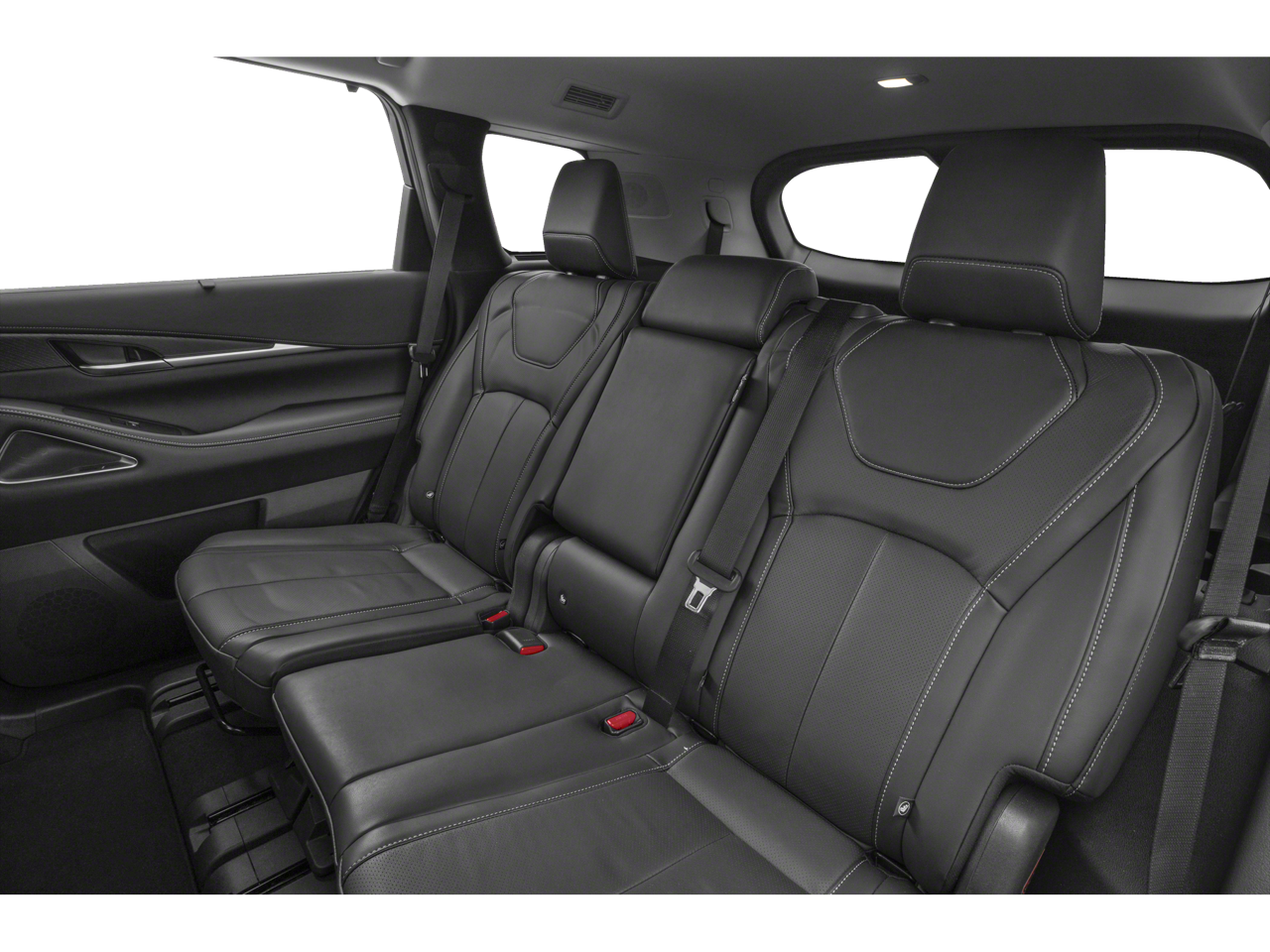 3rd row seats: bench, 4-Wheel Disc Brakes, 4.334 Axle Ratio, 9 Speakers, ABS brakes, Air Conditioning, Alloy wheels, AM/FM radio: SiriusXM, Anti-whiplash front head restraints, Auto High-beam Headlights, Auto-dimming door mirrors, Auto-dimming Rear-View mirror, Automatic temperature control, Brake assist, Bumpers: body-color, Cargo Mat (Reversible), Cargo Package, Climate-Controlled Front Bucket Seats, Delay-off headlights, Driver door bin, Driver vanity mirror, Dual front impact airbags, Dual front side impact airbags, Electronic Stability Control, Emergency communication system, First Aid Kit, Floor Mats on Bench Seats w/3rd Row Tray, Four wheel independent suspension, Front anti-roll bar, Front Bucket Seats, Front Center Armrest, Front dual zone A/C, Front reading lights, Fully automatic headlights, Garage door transmitter: HomeLink, Heated door mirrors, Heated front seats, Heated steering wheel, Illuminated entry, Knee airbag, Leather Shift Knob, Leather steering wheel, Leather-Appointed Seating Surfaces, Literature Kit, Low tire pressure warning, Memory seat, Navigation system: INFINITI InTouch Navigation, Occupant sensing airbag, Outside temperature display, Overhead airbag, Overhead console, Panic alarm, Passenger door bin, Passenger vanity mirror, Power door mirrors, Power driver seat, Power Liftgate, Power moonroof, Power passenger seat, Power steering, Power windows, Radio data system, Radio: AM/FM Audio System, Rain sensing wipers, Rear air conditioning, Rear anti-roll bar, Rear reading lights, Rear seat center armrest, Rear side impact airbag, Rear window defroster, Rear window wiper, Reclining 3rd row seat, Remote keyless entry, Security system, Speed control, Speed-sensing steering, Speed-Sensitive Wipers, Splash Guards, Split folding rear seat, Spoiler, Steering wheel memory, Steering wheel mounted audio controls, Tachometer, Telescoping steering wheel, Tilt steering wheel, Traction control, Trip computer, Turn signal indicator mirrors, Variably intermittent wipers, Ventilated front seats, Wheels: 20 x 8J Sporty Machined Aluminum Alloy.