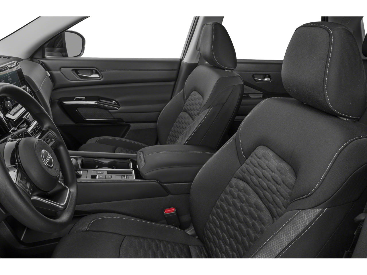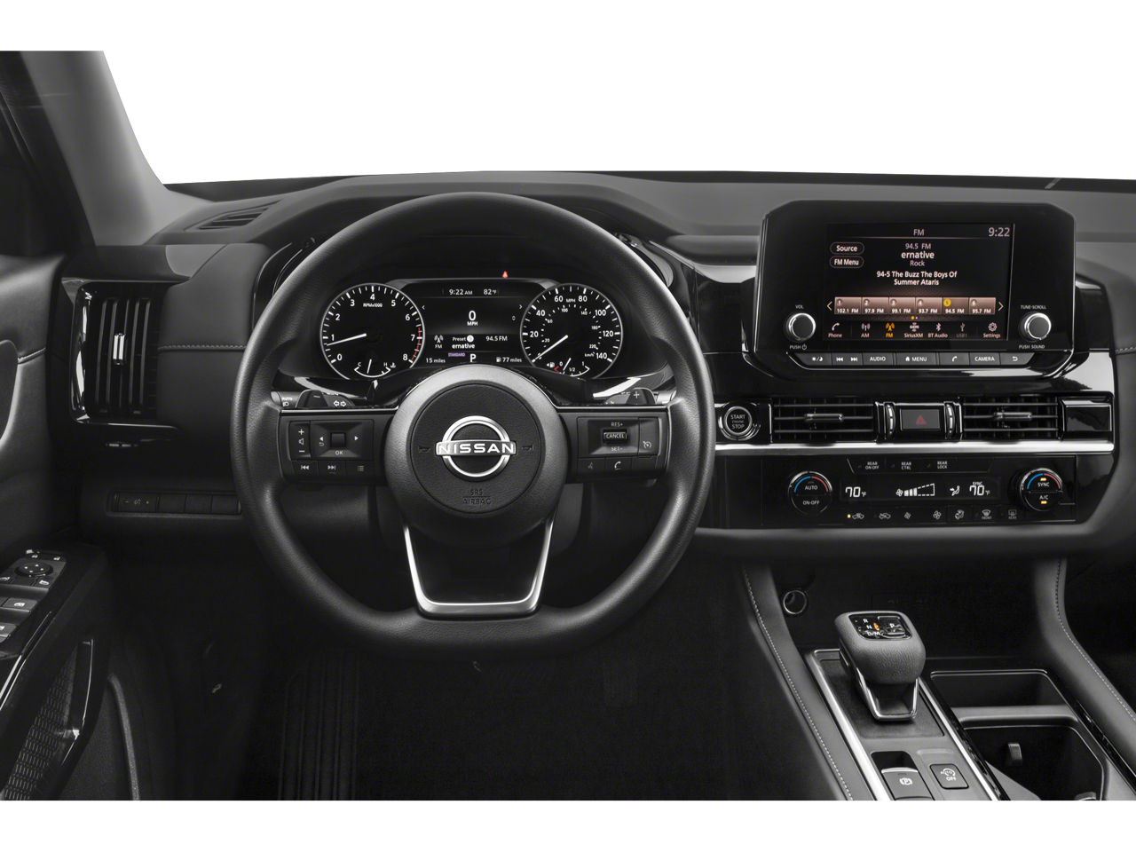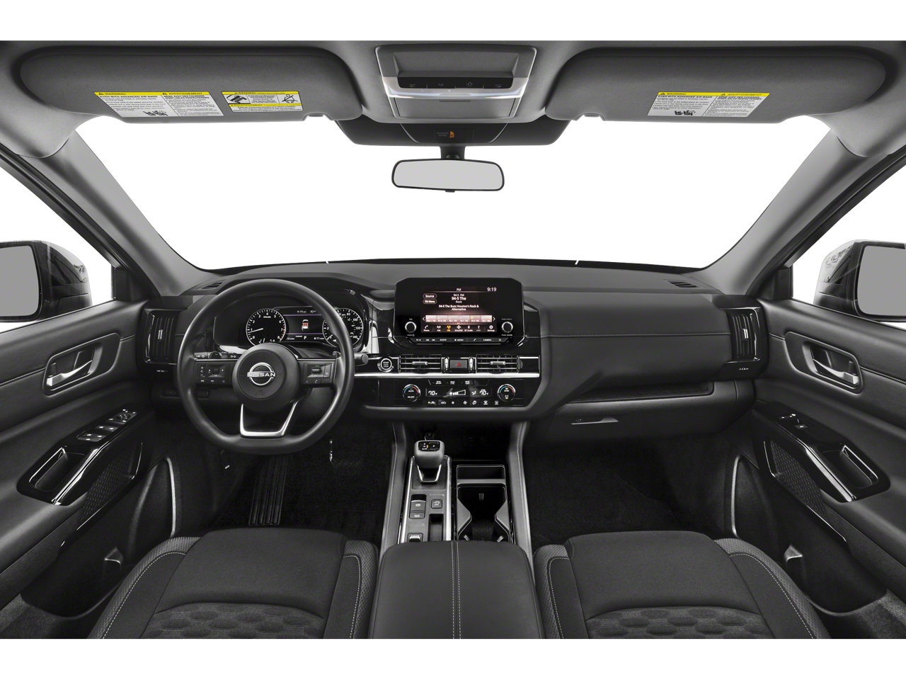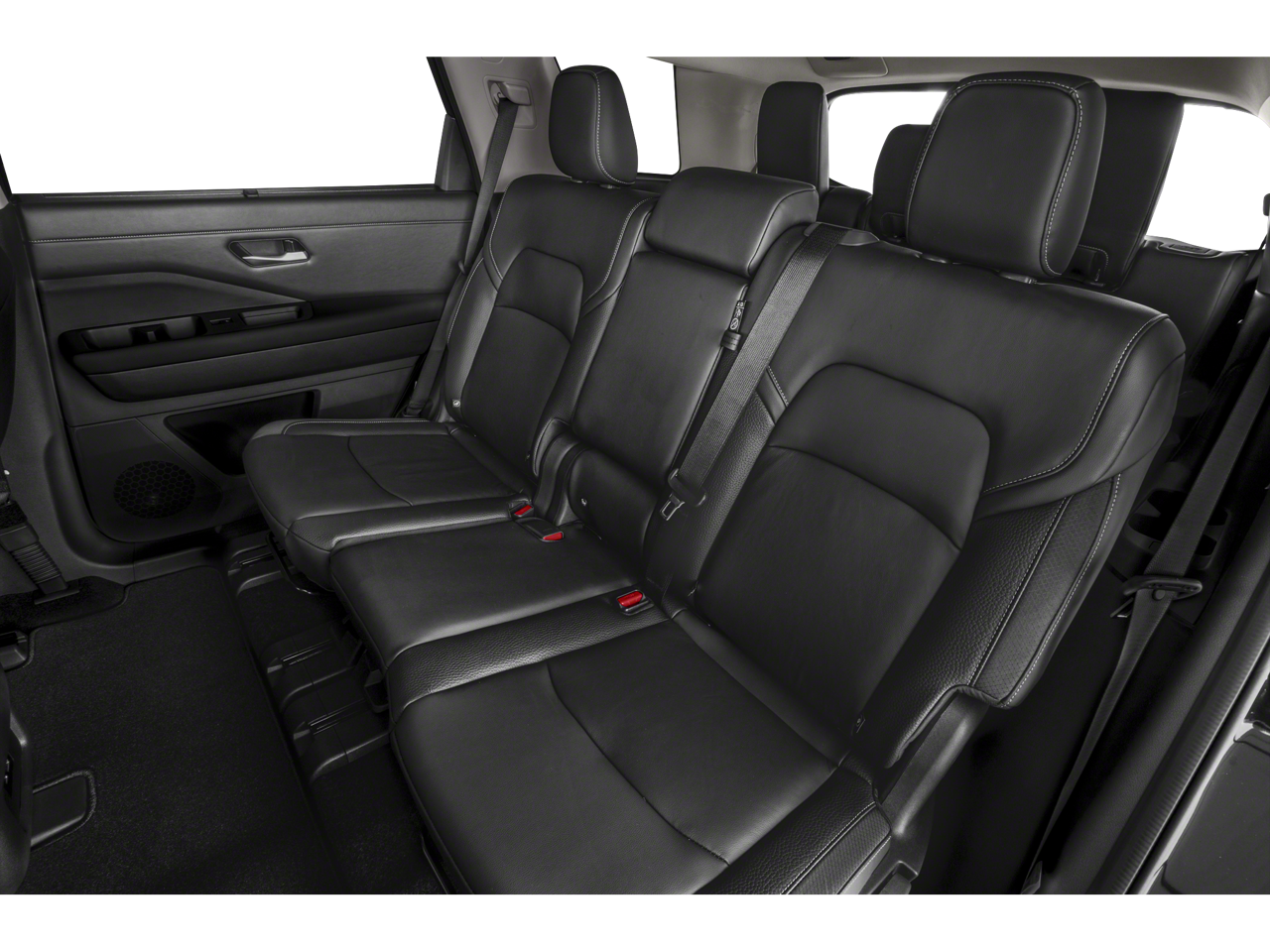 4WD, 18 Machined Alloy Wheels, 3rd row seats: bench, 4-Wheel Disc Brakes, 6 Speakers, ABS brakes, Air Conditioning, Alloy wheels, AM/FM radio: SiriusXM, Auto High-beam Headlights, Auto-dimming Rear-View mirror, Automatic temperature control, Axle Ratio: 4.334, Bench Seat Carpeted Floor Mats (Set of 4), Black Appearance Package, Black Grille (K10), Black Liftgate Emblems, Black Splash Guards (Set of 4), Brake assist, Bumpers: body-color, Cross Bars, Delay-off headlights, Driver door bin, Driver vanity mirror, Dual front impact airbags, Dual front side impact airbags, Electronic Stability Control, Emergency communication system: NissanConnect Services, Exterior Parking Camera Rear, Four wheel independent suspension, Front anti-roll bar, Front Bucket Seats, Front Center Armrest, Front dual zone A/C, Front reading lights, Fully automatic headlights, Garage door transmitter: HomeLink, Heated door mirrors, Heated Front Bucket Seats, Heated front seats, Heated steering wheel, Illuminated entry, Knee airbag, Leather Seating Surfaces, Leather steering wheel, LED Fog Lamps, Low tire pressure warning, Navigation system: NissanConnect Navigation, NissanConnect w/Navigation & Services, Occupant sensing airbag, Outside temperature display, Overhead airbag, Overhead console, Panic alarm, Passenger door bin, Passenger vanity mirror, Pathfinder Wordmark, Power door mirrors, Power driver seat, Power Liftgate, Power passenger seat, Power steering, Power windows, Radio data system, Radio: AM/FM Audio System, Rear air conditioning, Rear anti-roll bar, Rear reading lights, Rear seat center armrest, Rear side impact airbag, Rear window defroster, Rear window wiper, Reclining 3rd row seat, Remote keyless entry, Security system, Speed control, Speed-sensing steering, Split folding rear seat, Spoiler, Steering wheel mounted audio controls, Tachometer, Telescoping steering wheel, Tilt steering wheel, Traction control, Trip computer, Turn signal indicator mirrors, Variably intermittent wipers, 4WD.