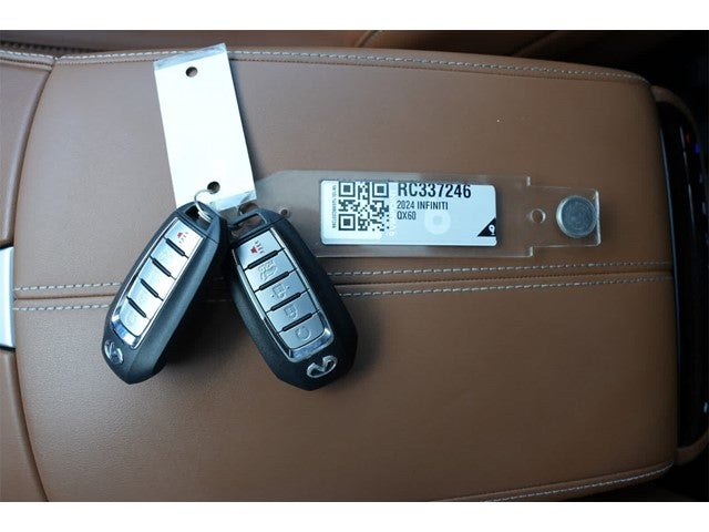 INFINITI Certified Pre-Owned Certified, 10.8 Head-Up Display, 17 Speakers, 3rd row seats: bench, 4-Wheel Disc Brakes, 4.33 Axle Ratio, ABS brakes, Adaptive Front Lighting System, Air Conditioning, Alloy wheels, AM/FM radio: SiriusXM, Anti-whiplash front head restraints, Apple CarPlay/Android Auto, Auto High-beam Headlights, Auto tilt-away steering wheel, Auto-dimming door mirrors, Auto-dimming Rear-View mirror, Automatic temperature control, Bose Performance Series 17-Speaker Sound System, Brake assist, Bumpers: body-color, Climate Controlled Front Bucket Seats, Delay-off headlights, Driver door bin, Driver vanity mirror, Dual front impact airbags, Dual front side impact airbags, Electronic Stability Control, Emergency communication system: INFINITI InTouch, Exterior Parking Camera Rear, Four wheel independent suspension, Front anti-roll bar, Front Bucket Seats, Front Center Armrest, Front dual zone A/C, Front reading lights, Fully automatic headlights, Garage door transmitter: HomeLink, Heated door mirrors, Heated front seats, Heated rear seats, Heated steering wheel, Illuminated entry, Knee airbag, Leather Shift Knob, Leather steering wheel, Leather-Appointed Seating Surfaces, Low tire pressure warning, Memory seat, Navigation system: INFINITI InTouch Navigation, Occupant sensing airbag, Outside temperature display, Overhead airbag, Overhead console, Panic alarm, Passenger door bin, Passenger vanity mirror, Power door mirrors, Power driver seat, Power Liftgate, Power moonroof, Power passenger seat, Power steering, Power windows, Radio data system, Radio: AM/FM Audio System, Rain sensing wipers, Rear air conditioning, Rear anti-roll bar, Rear reading lights, Rear seat center armrest, Rear side impact airbag, Rear window defroster, Rear window wiper, Reclining 3rd row seat, Remote keyless entry, Security system, Silver-Color Roof Rail Cross Bars, Smart Rear View Mirror, Speed control, Speed-sensing steering, Speed-Sensitive Wipers, Splash Guards (Set of 4), Split folding rear seat, Spoiler, Steering wheel memory, Steering wheel mounted audio controls, Tachometer, Telescoping steering wheel, Tilt steering wheel, Traction control, Trip computer, Turn signal indicator mirrors, Variably intermittent wipers, Ventilated front seats, Vision Package, Wheels: 20 x 8J Luxury Machined Aluminum Alloy.