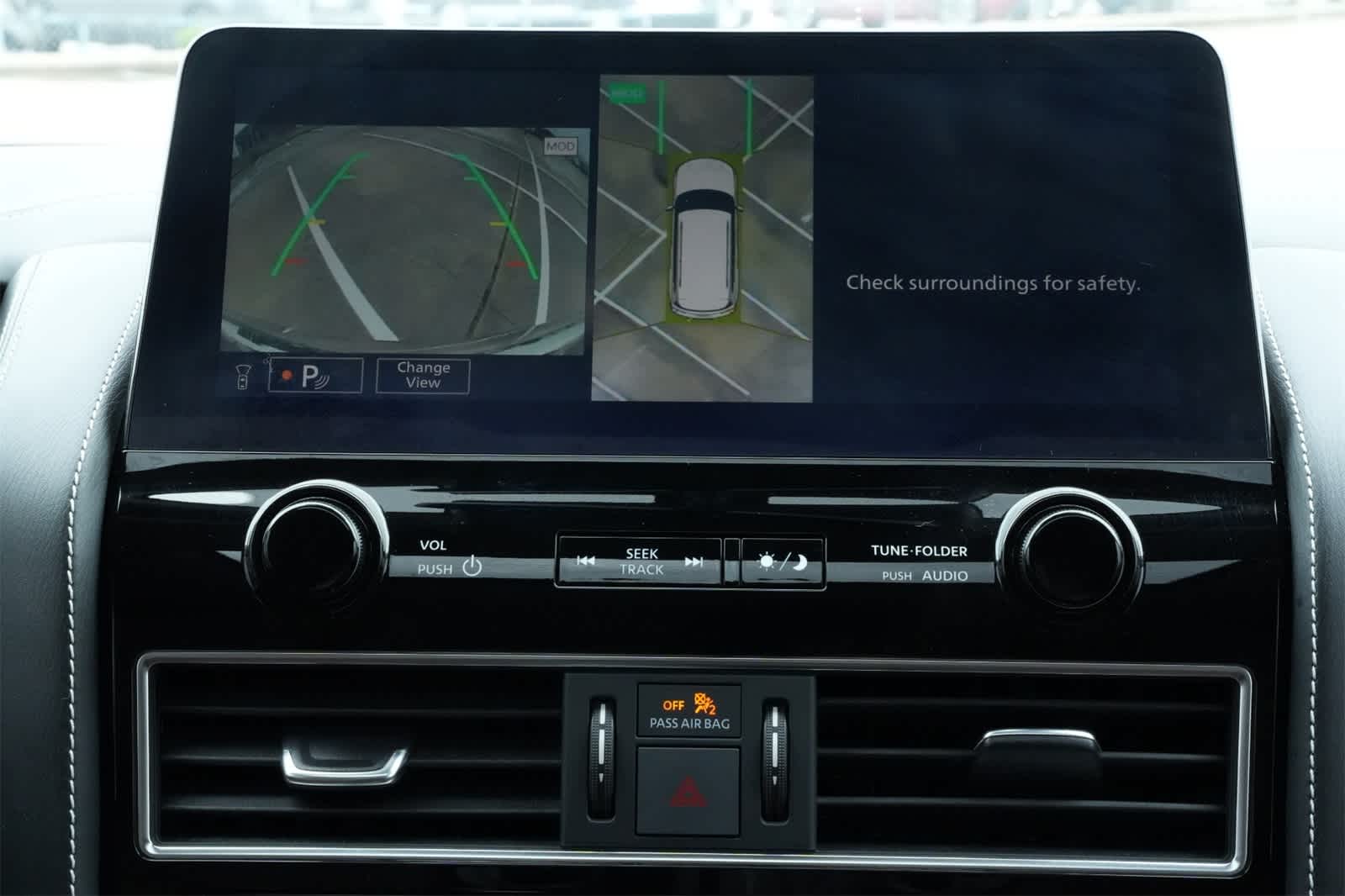 INFINITI Certified Pre-Owned Certified, 13 Speakers, 2.937 Axle Ratio, 3rd row seats: bench, 4-Wheel Disc Brakes, ABS brakes, Air Conditioning, Alloy wheels, AM/FM radio: SiriusXM, Anti-whiplash front head restraints, Apple CarPlay/Android Auto, Auto High-beam Headlights, Auto tilt-away steering wheel, Auto-dimming door mirrors, Auto-dimming Rear-View mirror, Auto-leveling suspension, Automatic temperature control, Brake assist, Bumpers: body-color, Cargo Package, Compass, Console Net, Delay-off headlights, Driver door bin, Driver vanity mirror, Dual front impact airbags, Dual front side impact airbags, Electronic Stability Control, Emergency communication system: INFINITI InTouch, First-Aid Kit, Four wheel independent suspension, Front anti-roll bar, Front Bucket Seats, Front Center Armrest, Front dual zone A/C, Front fog lights, Front reading lights, Fully automatic headlights, Garage door transmitter: HomeLink, Heated door mirrors, Heated Front Bucket Seats, Heated front seats, Heated steering wheel, Illuminated entry, Leather Shift Knob, Leather steering wheel, Leather-Appointed Seats, Literature Kit, Low tire pressure warning, Memory seat, Moisture-Resistant Rear Cargo Carpet, Navigation system: INFINITI InTouch Navigation, Nylon-Cord Cargo Net, Occupant sensing airbag, Outside temperature display, Overhead airbag, Overhead console, Panic alarm, Passenger door bin, Passenger vanity mirror, Power door mirrors, Power driver seat, Power Liftgate, Power moonroof, Power passenger seat, Power steering, Power windows, Premium Select Truffle Brown Interior, Radio data system, Radio: Bose Premium Audio System w/13 Speakers, Rain sensing wipers, Rear air conditioning, Rear anti-roll bar, Rear reading lights, Rear seat center armrest, Rear window defroster, Rear window wiper, Reclining 3rd row seat, Remote keyless entry, Roof Rail Cross Bars, Security system, Speed control, Speed-sensing steering, Split folding rear seat, Spoiler, Steering wheel memory, Steering wheel mounted audio controls, Tachometer, Telescoping steering wheel, Tilt steering wheel, Traction control, Trip computer, Turn signal indicator mirrors, Variably intermittent wipers, Voltmeter, Wheels: 22 Dark Chrome Cast Aluminum-Alloy.