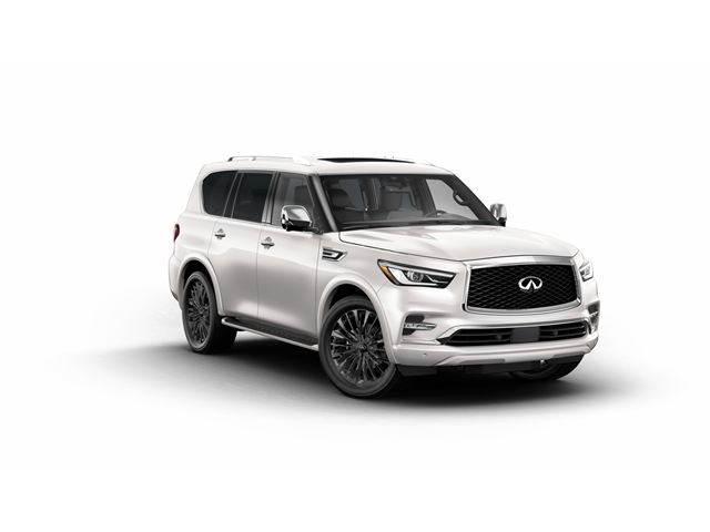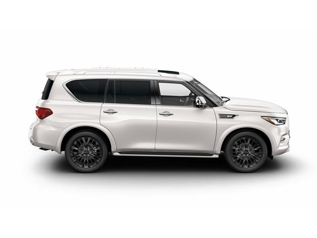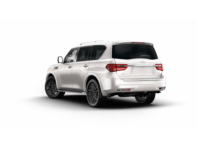 17 Speakers, 2.937 Axle Ratio, 3rd row seats: bench, 4-Wheel Disc Brakes, ABS brakes, Air Conditioning, Alloy wheels, AM/FM radio: SiriusXM, Anti-whiplash front head restraints, Apple CarPlay/Android Auto, Auto High-beam Headlights, Auto tilt-away steering wheel, Auto-dimming door mirrors, Auto-dimming Rear-View mirror, Auto-leveling suspension, Automatic temperature control, Brake assist, Bumpers: body-color, Cargo Package, Climate Controlled Front Bucket Seats, Compass, Console Net, Delay-off headlights, Driver door bin, Driver vanity mirror, Dual Camera Drive Recorder Dash Cam, Dual front impact airbags, Dual front side impact airbags, Electronic Stability Control, Emergency communication system: INFINITI InTouch, First-Aid Kit, Four wheel independent suspension, Front anti-roll bar, Front Bucket Seats, Front Center Armrest, Front dual zone A/C, Front fog lights, Front reading lights, Fully automatic headlights, Garage door transmitter: HomeLink, Heated door mirrors, Heated front seats, Heated rear seats, Heated steering wheel, Illuminated entry, Leather Shift Knob, Leather steering wheel, Literature Kit, Low tire pressure warning, Memory seat, Moisture-Resistant Rear Cargo Carpet, Navigation system: INFINITI InTouch Navigation, Nylon-Cord Cargo Net, Occupant sensing airbag, Outside temperature display, Overhead airbag, Overhead console, Panic alarm, Passenger door bin, Passenger vanity mirror, Perforated Semi-Aniline Leather-Appointed Seats, Power door mirrors, Power driver seat, Power Liftgate, Power moonroof, Power passenger seat, Power steering, Power windows, Radio data system, Radio: Bose Performance Audio System w/17 Speakers, Rain sensing wipers, Rear air conditioning, Rear anti-roll bar, Rear reading lights, Rear seat center armrest, Rear window defroster, Rear window wiper, Reclining 3rd row seat, Remote keyless entry, Security system, Speed control, Speed-sensing steering, Split folding rear seat, Spoiler, Steering wheel memory, Steering wheel mounted audio controls, Tachometer, Telescoping steering wheel, Tilt steering wheel, Traction control, Trip computer, Turn signal indicator mirrors, Variably intermittent wipers, Ventilated front seats, Voltmeter, Wheels: 22 Dark Chrome Cast Aluminum-Alloy.
