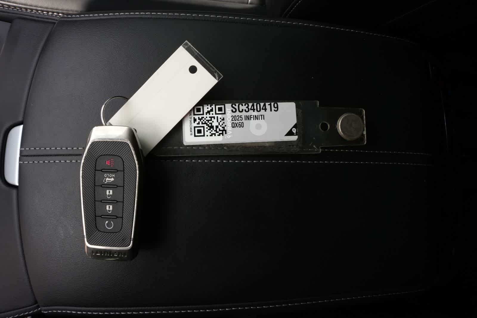 INFINITI Certified Pre-Owned Certified, 3rd row seats: bench, 4-Wheel Disc Brakes, ABS brakes, Air Conditioning, Alloy wheels, AM/FM radio: SiriusXM, Auto High-beam Headlights, Auto tilt-away steering wheel, Auto-dimming Rear-View mirror, Automatic temperature control, Brake assist, Cargo Package, Delay-off headlights, Driver door bin, Driver vanity mirror, Dual front impact airbags, Dual front side impact airbags, Electronic Stability Control, Exterior Parking Camera Rear, Four wheel independent suspension, Front anti-roll bar, Front Bucket Seats, Front dual zone A/C, Front reading lights, Fully automatic headlights, Garage door transmitter: HomeLink, Heated door mirrors, Heated front seats, Heated rear seats, Heated steering wheel, Illuminated entry, Knee airbag, Leather Shift Knob, Leather steering wheel, Leather-Appointed Seating Surfaces, Low tire pressure warning, Memory seat, Navigation system: INFINITI InTouch Navigation, Occupant sensing airbag, Outside temperature display, Overhead airbag, Overhead console, Panic alarm, Passenger door bin, Passenger vanity mirror, Power door mirrors, Power driver seat, Power Liftgate, Power moonroof, Power passenger seat, Power steering, Power windows, Radio data system, Rain sensing wipers, Rear air conditioning, Rear anti-roll bar, Rear reading lights, Rear side impact airbag, Rear window defroster, Rear window wiper, Reclining 3rd row seat, Remote keyless entry, Security system, Speed control, Speed-sensing steering, Speed-Sensitive Wipers, Split folding rear seat, Spoiler, Steering wheel memory, Steering wheel mounted audio controls, Tachometer, Telescoping steering wheel, Tilt steering wheel, Traction control, Trip computer, Turn signal indicator mirrors, Variably intermittent wipers.