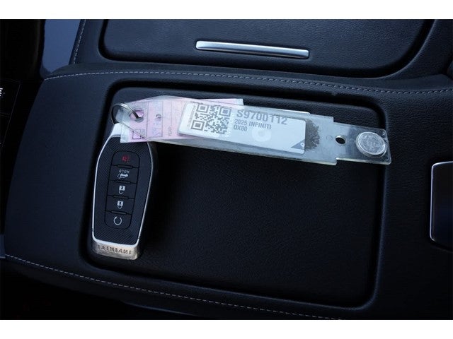 INFINITI Certified Pre-Owned Certified, 3rd row seats: bench, 4-Wheel Disc Brakes, ABS brakes, Adaptive suspension, Air Conditioning, Alloy wheels, AM/FM radio: SiriusXM with 360L, Anti-whiplash front head restraints, Apple CarPlay/Android Auto, Audio memory, Auto High-beam Headlights, Auto tilt-away steering wheel, Auto-dimming door mirrors, Auto-dimming Rear-View mirror, Auto-leveling suspension, Automatic temperature control, Brake assist, Bumpers: body-color, Cargo Blocks, Center Front Spoiler, Climate Controlled Front Bucket Seats w/Massage, Compass, Console Net, Delay-off headlights, Driver door bin, Driver vanity mirror, Dual front impact airbags, Dual front side impact airbags, Electronic Stability Control, Emergency communication system: INFINITI InTouch, Exterior Package, Four wheel independent suspension, Front anti-roll bar, Front Bucket Seats, Front Center Armrest, Front dual zone A/C, Front reading lights, Fully automatic headlights, Garage door transmitter: myQ Connected Garage, Genuine wood dashboard insert, Genuine wood door panel insert, Heads-Up Display, Heated door mirrors, Heated front seats, Heated rear seats, Heated steering wheel, HVAC memory, Illuminated entry, INFINITI Radiant Silver Cargo Scuff Plates, Knee airbag, Leather steering wheel, Literature Kit, Low tire pressure warning, Matte Chrome Rear Bumper Protector, Memory seat, Navigation system: Google Built-in, Occupant sensing airbag, Outside temperature display, Overhead airbag, Overhead console, Panic alarm, Panoramic Illuminated Headliner, Passenger door bin, Passenger vanity mirror, Power door mirrors, Power driver seat, Power Liftgate, Power moonroof, Power passenger seat, Power steering, Power windows, Premium Cargo Package, Premium Paint, ProPILOT Assist 2.1 (SENSORY Grade), Radio data system, Radio: Klipsch Reference Premiere Audio System, Rain sensing wipers, Rear air conditioning, Rear anti-roll bar, Rear reading lights, Rear seat center armrest, Rear window defroster, Rear window wiper, Reclining 3rd row seat, Remote keyless entry, Reversible Cargo Mat, Security system, Semi-Aniline Premium Leather Seating Surfaces, Silver Cross Bars, Silver Interior Lighting Package, Smart Luggage Shelf, Soft Sided Cooler, Speed control, Speed-sensing steering, Splash Guards, Split Bench Seat Package, Split folding rear seat, Spoiler, Steering wheel memory, Steering wheel mounted audio controls, Tachometer, Telescoping steering wheel, Tilt steering wheel, Traction control, Trip computer, Turn signal indicator mirrors, Umbrella Holder, Variably intermittent wipers, Ventilated front seats, Ventilated rear seats, Wheels: 22 x 8 Cast Aluminum Alloy.