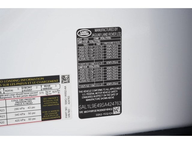 3.0L I6, 15 Speakers, 20-Way Elec Heated & Ventilated Fr Seats w/Memory, 4-Wheel Disc Brakes, A/V remote, ABS brakes, Adaptive suspension, Air Conditioning, Alloy wheels, AM/FM radio: SiriusXM, Apple CarPlay & Android Auto, Auto High-beam Headlights, Auto tilt-away steering wheel, Auto-dimming door mirrors, Auto-dimming Rear-View mirror, Auto-leveling suspension, Automatic temperature control, Block heater, Brake assist, Bumpers: body-color, Child-Seat-Sensing Airbag, Compass, Delay-off headlights, Driver door bin, Driver vanity mirror, Drivers Seat Mounted Armrest, Dual front impact airbags, Dual front side impact airbags, Electronic Stability Control, Emergency communication system: InControl Protect, Exterior Parking Camera Rear, Four wheel independent suspension, Front anti-roll bar, Front Bucket Seats, Front Center Armrest w/Storage, Front dual zone A/C, Front fog lights, Front reading lights, Fully automatic headlights, Garage door transmitter: HomeLink, Headlight cleaning, Heated door mirrors, Heated front seats, Heated rear seats, Heated steering wheel, Illuminated entry, Leather steering wheel, Low tire pressure warning, Memory seat, Navigation system: InControl Navigation Pro, Occupant sensing airbag, Outside temperature display, Overhead airbag, Overhead console, Panic alarm, Passenger door bin, Passenger seat mounted armrest, Passenger vanity mirror, Perforated Windsor Leather Seat Trim, Power door mirrors, Power driver seat, Power Liftgate, Power moonroof, Power passenger seat, Power steering, Power windows, Radio data system, Radio: Meridian Sound System, Rain sensing wipers, Rear anti-roll bar, Rear fog lights, Rear reading lights, Rear seat center armrest, Rear window defroster, Rear window wiper, Remote keyless entry, Security system, Speed control, Speed-sensing steering, Speed-Sensitive Wipers, Split folding rear seat, Spoiler, Steering wheel memory, Steering wheel mounted audio controls, Telescoping steering wheel, Tilt steering wheel, Traction control, Trip computer, Turn signal indicator mirrors, Variably intermittent wipers, Ventilated front seats, Wheels: 21 Satin Dark Grey (Style 5126), 3.0L I6.